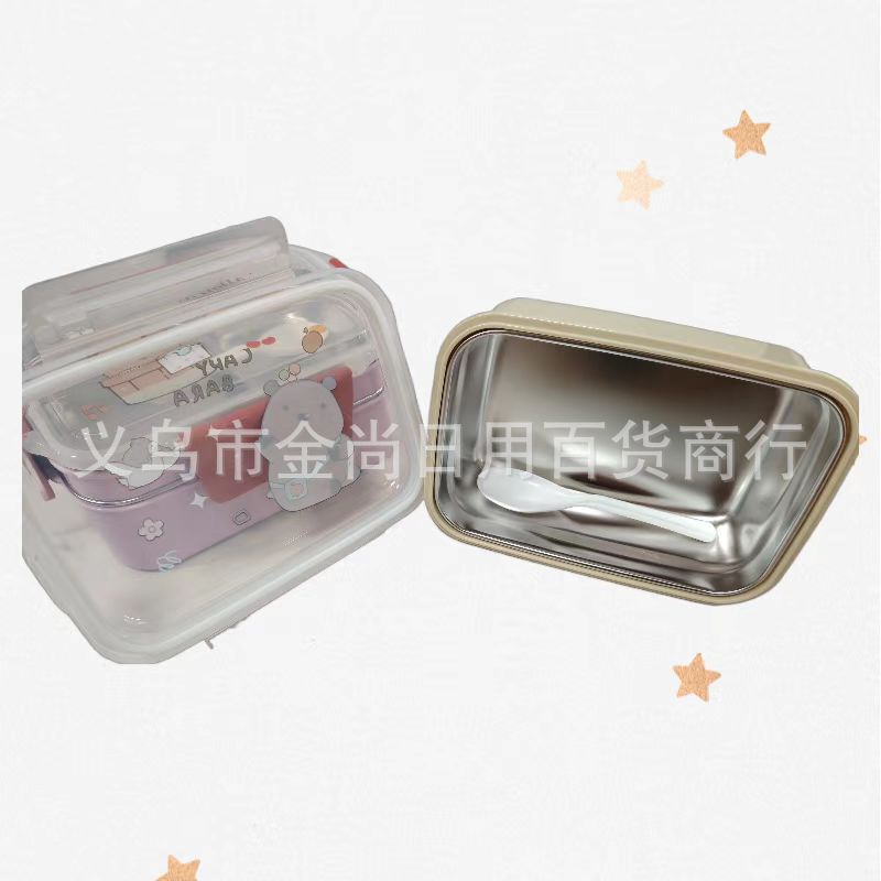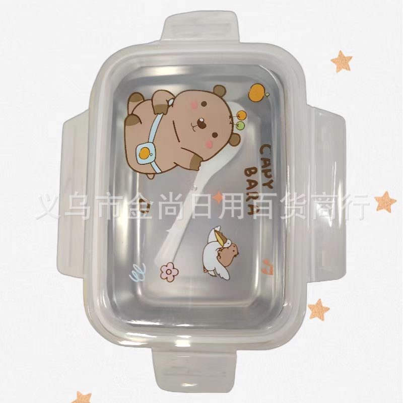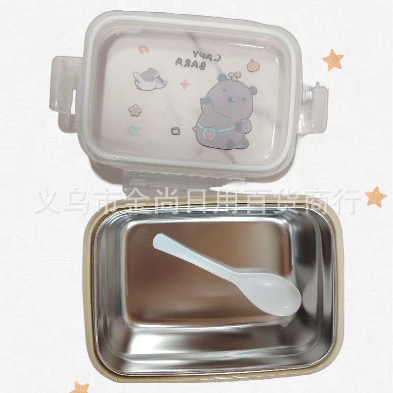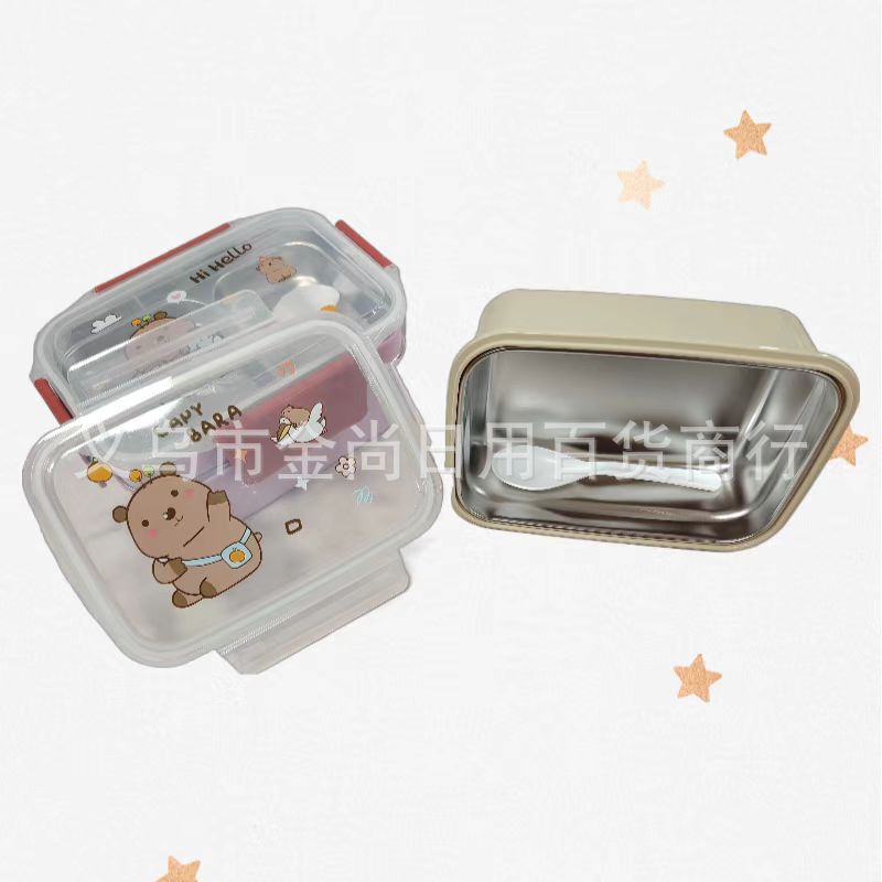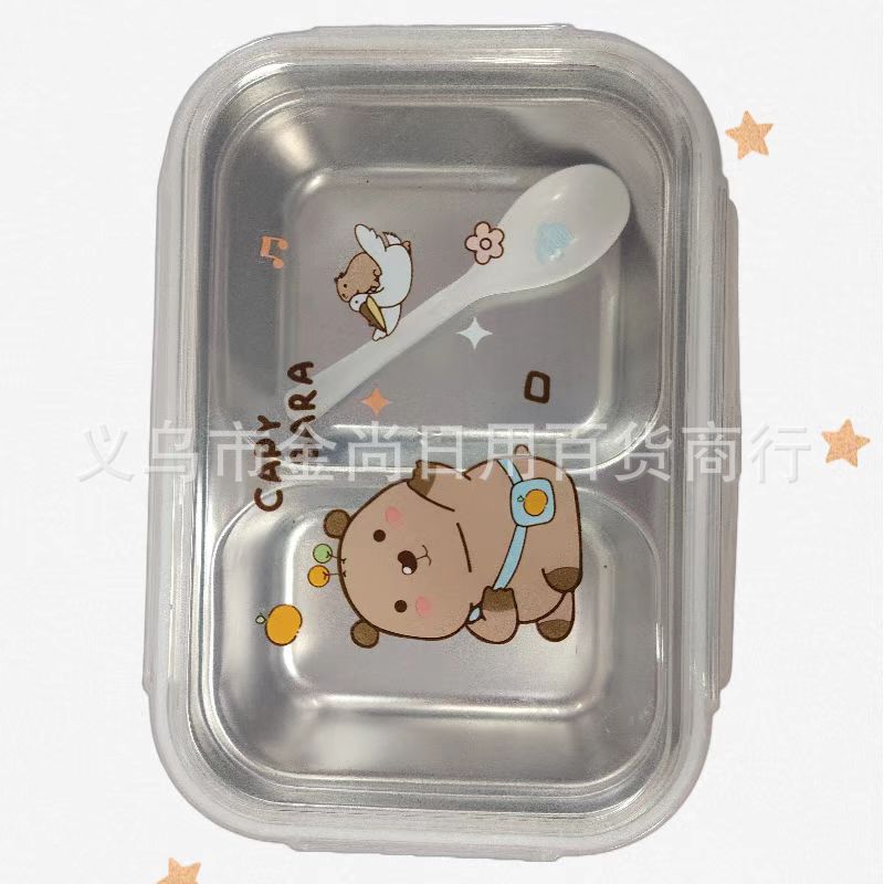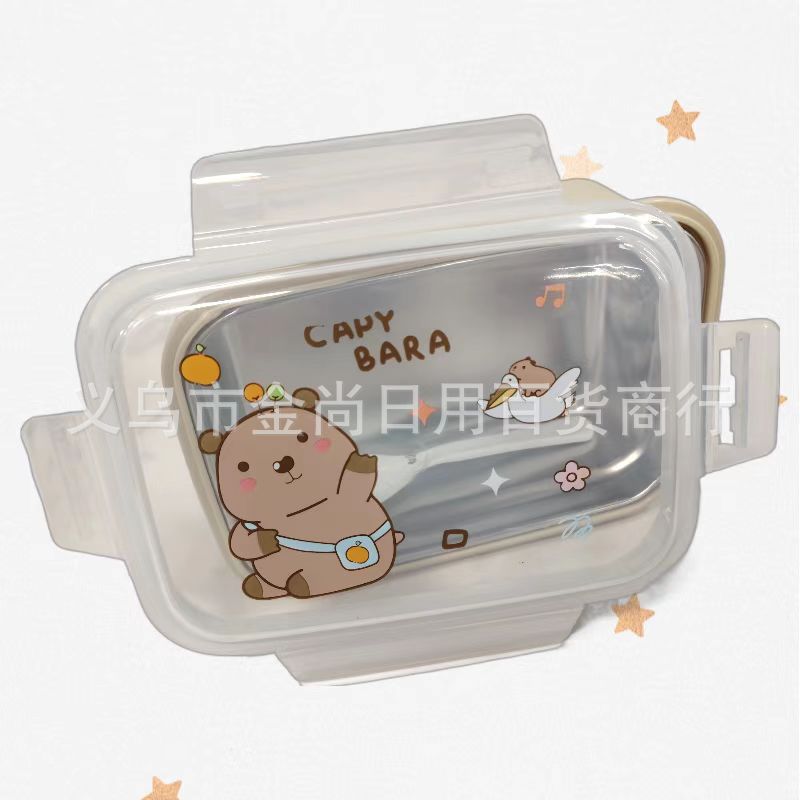 批发卡皮巴拉单层不锈钢饭盒学生食堂加热餐盒便携保温便当盒