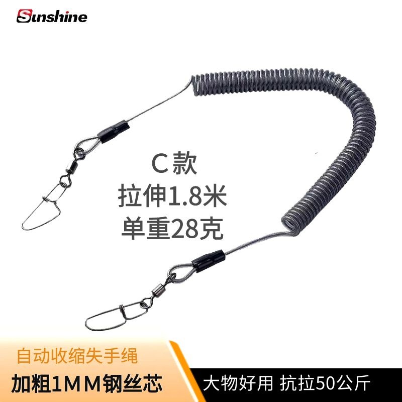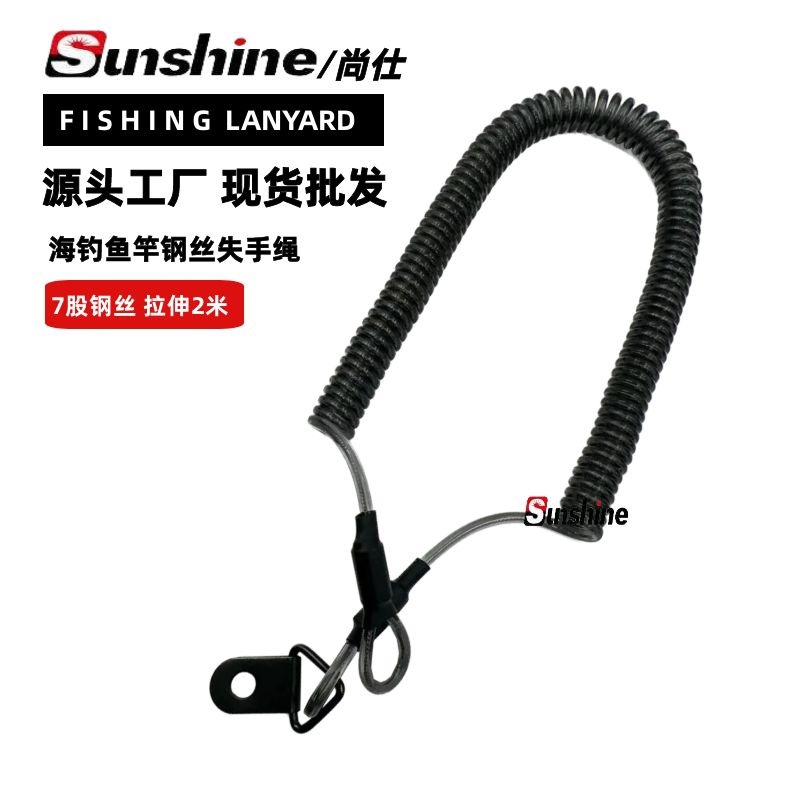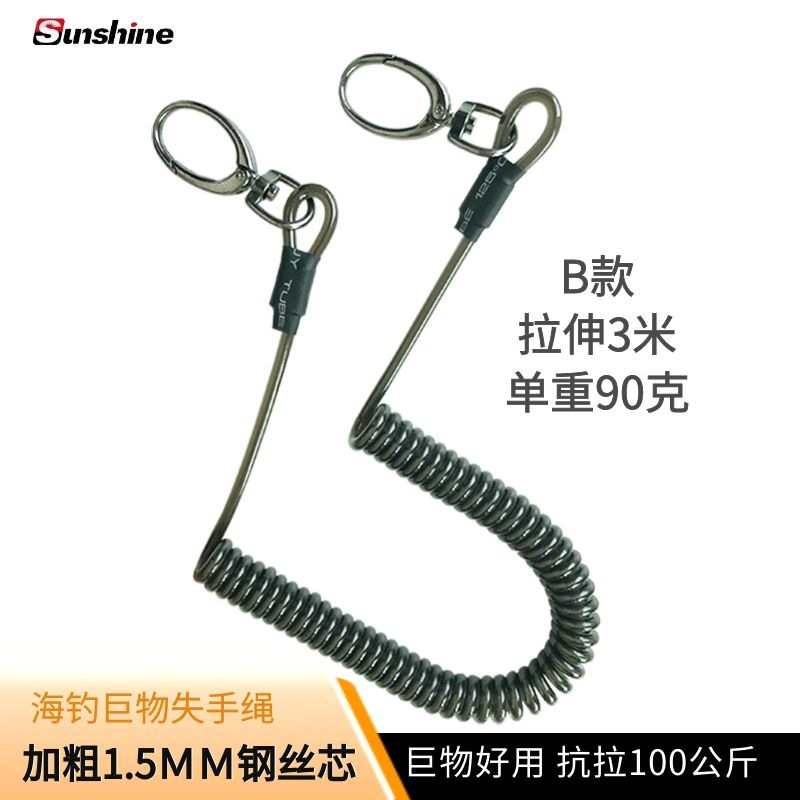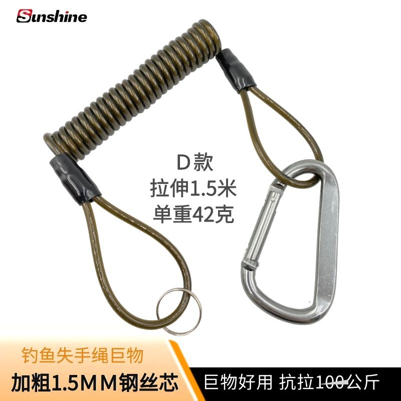 厂家定制失手绳脱竿绳防丢钓鱼工具钢丝芯溜鱼器弹力绳钓箱用