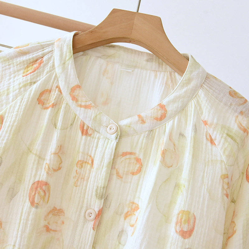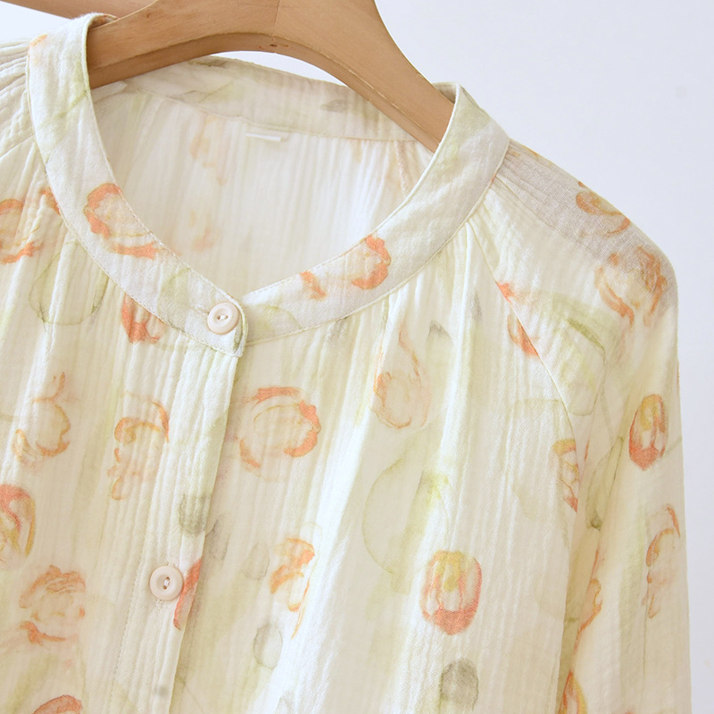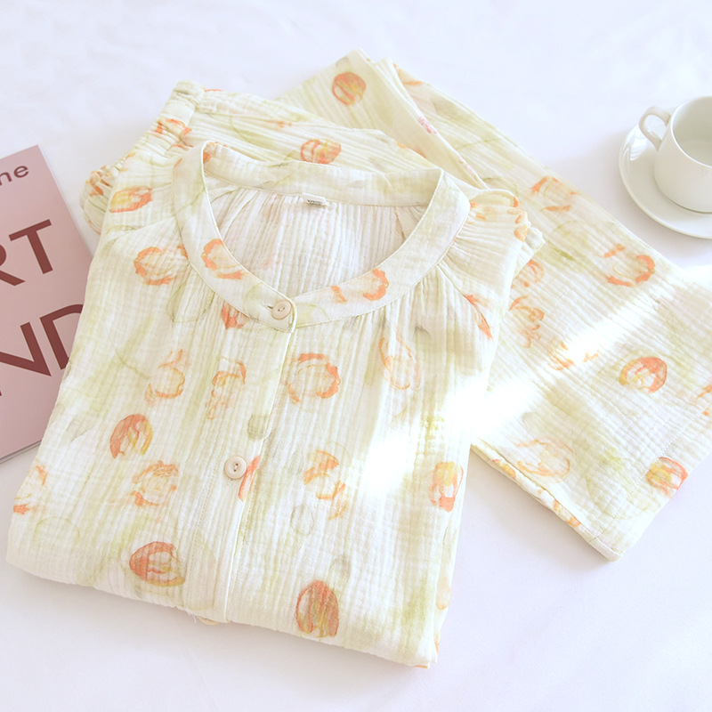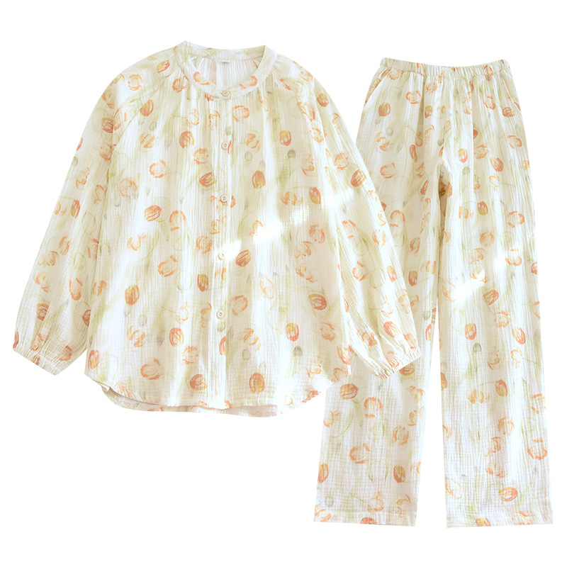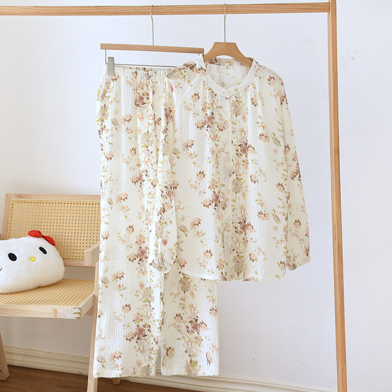 睡衣女纯棉长袖家居服女士宽松居家套装全棉立领简约居家服