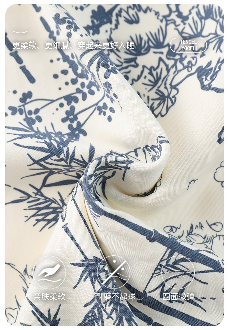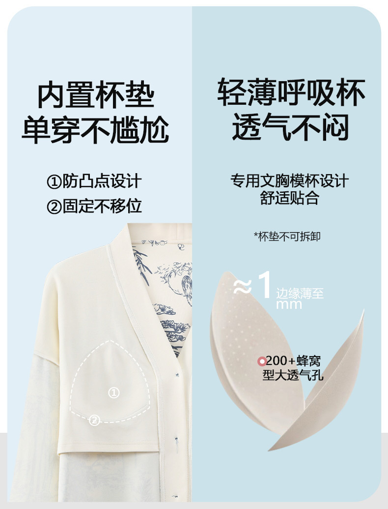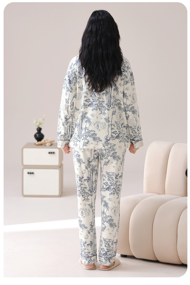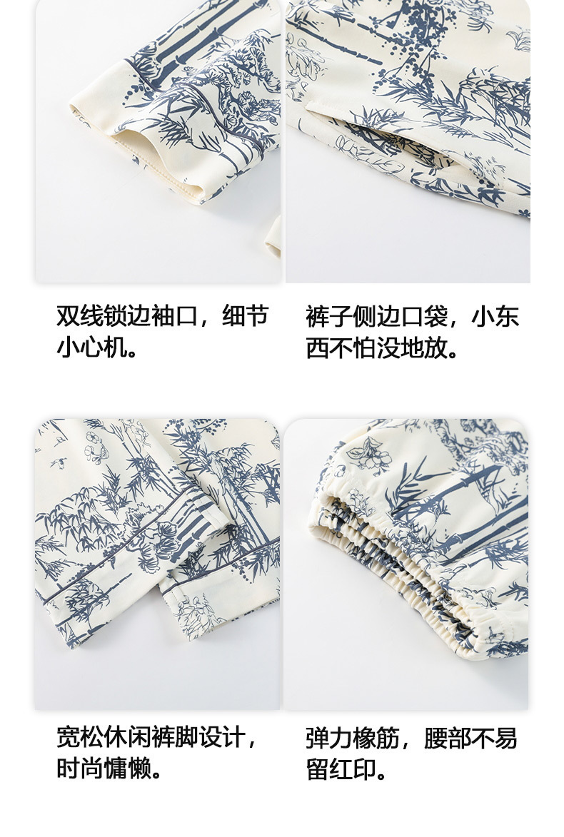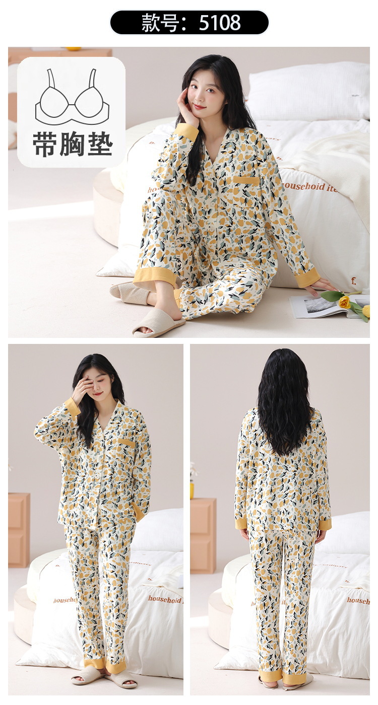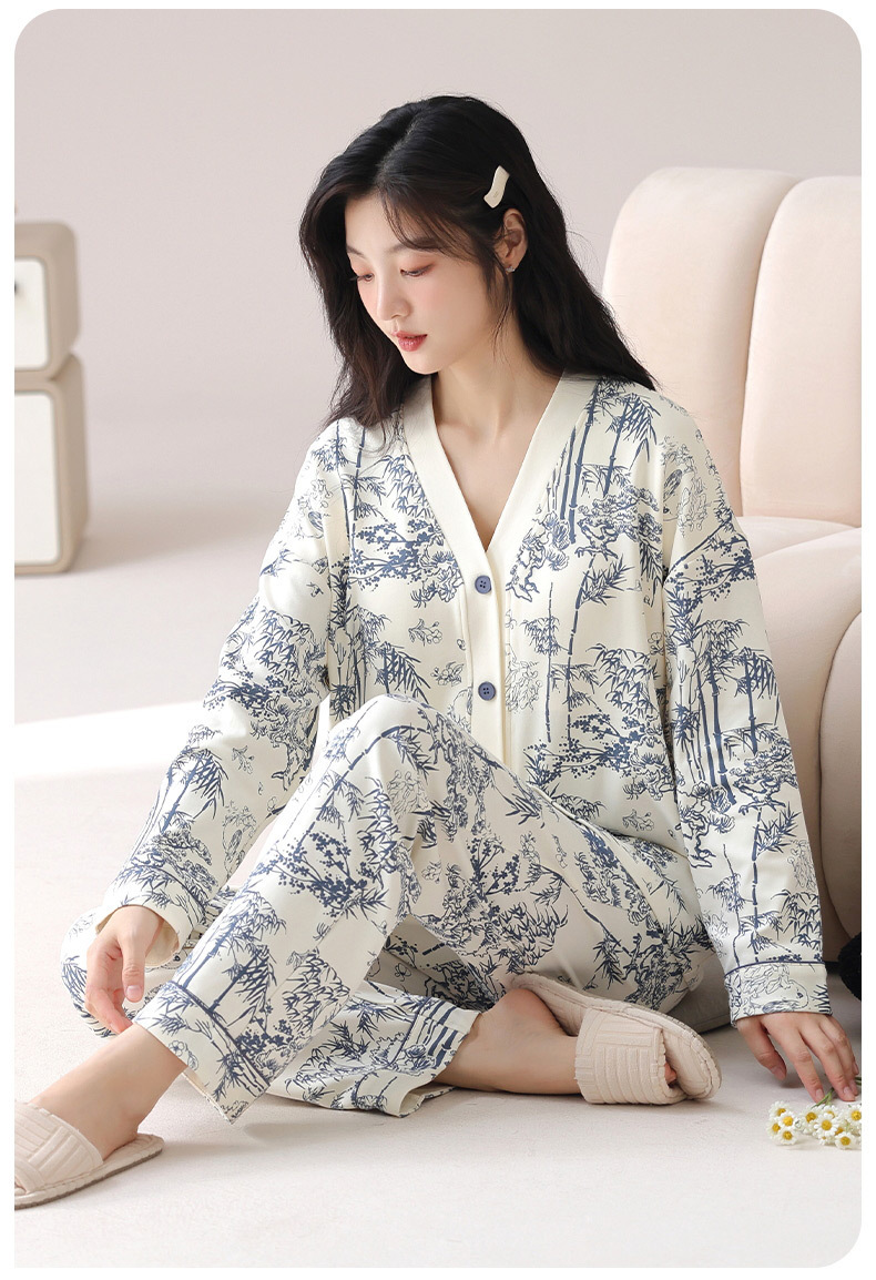 带胸垫春秋国风新款和服睡衣女长袖长裤可外穿套装V领开衫家居服