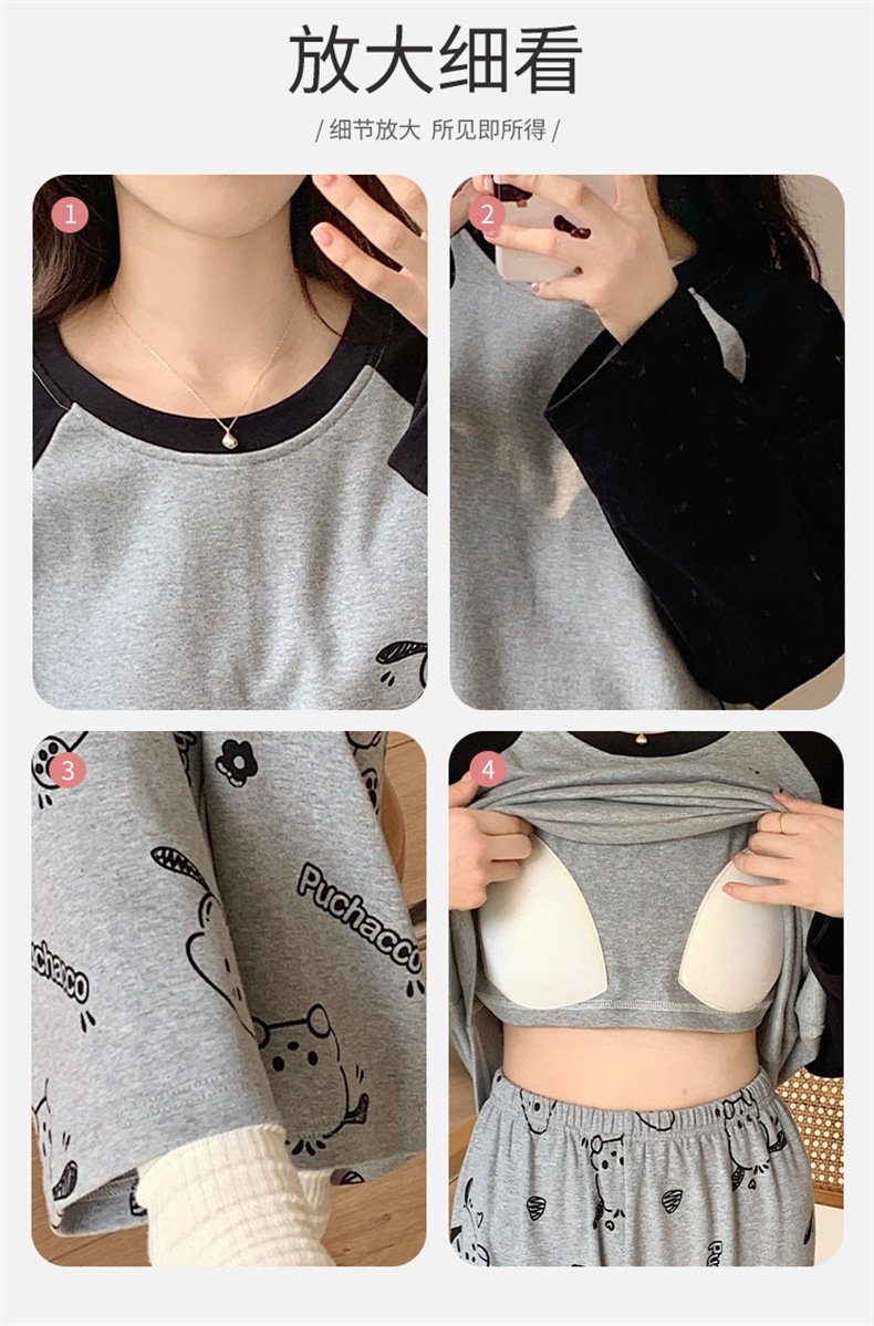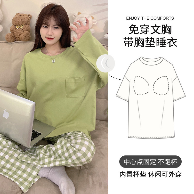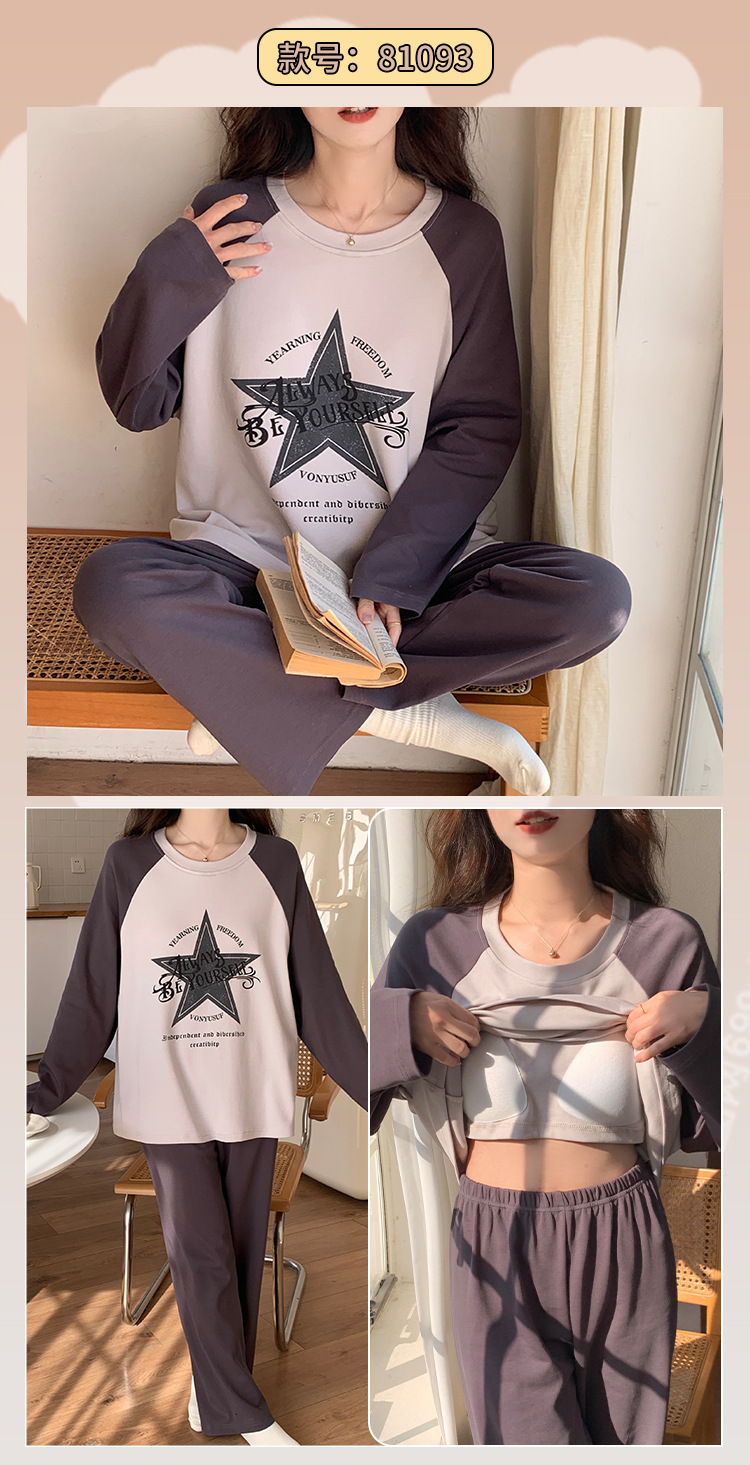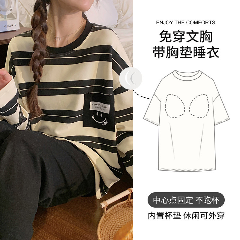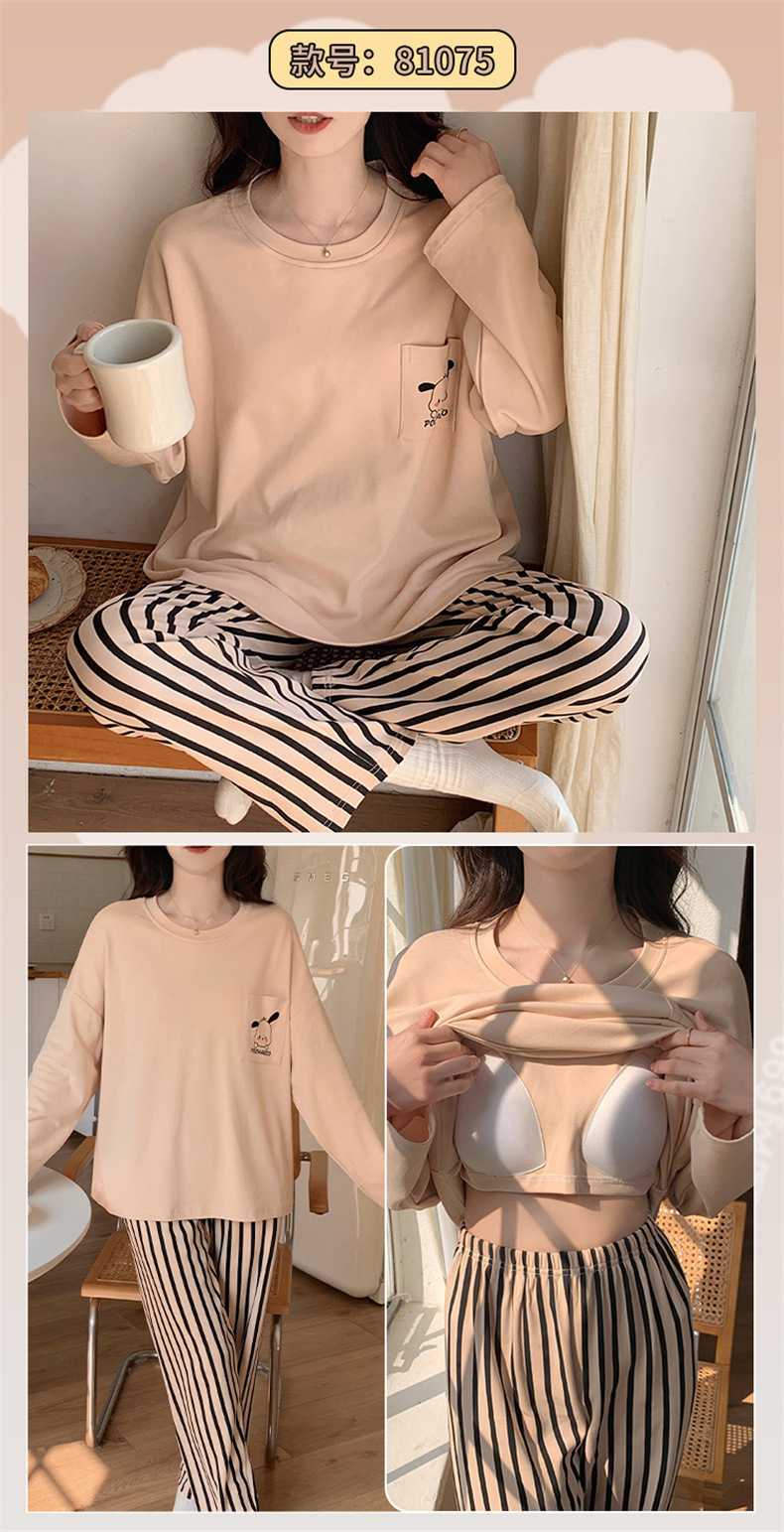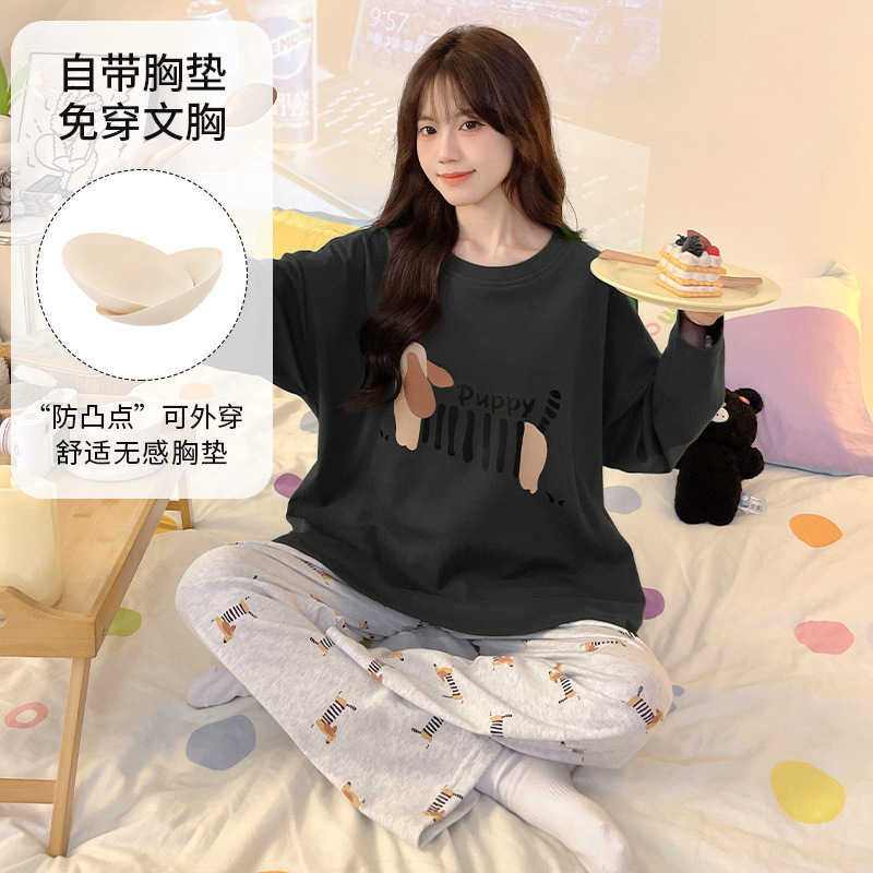2025新款春秋季天长袖带胸垫一体睡衣女长裤冬款家居服套装可外穿