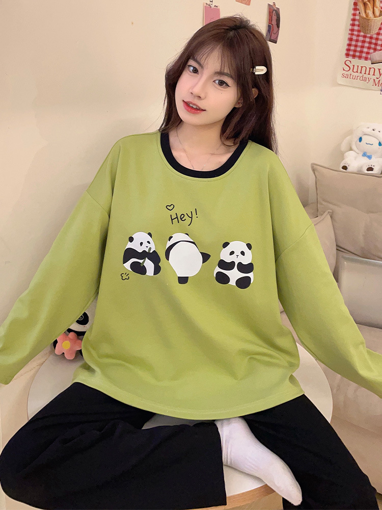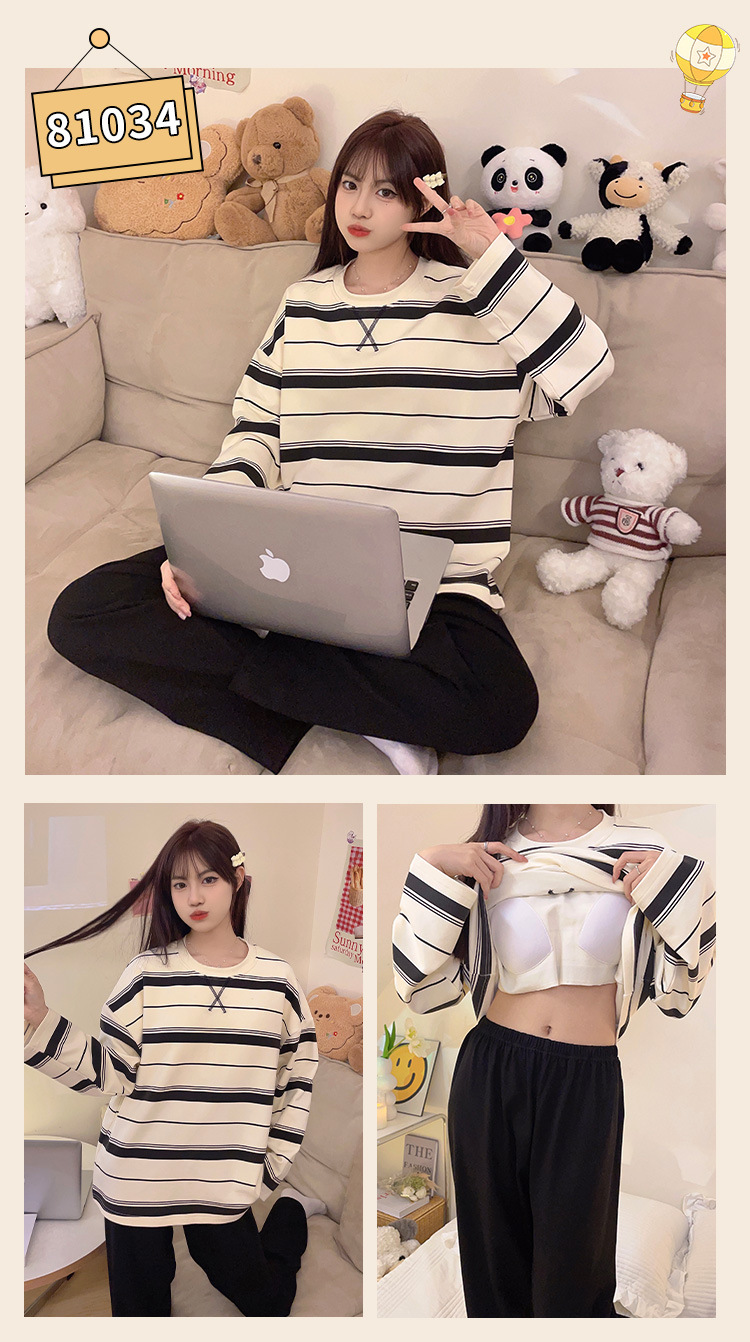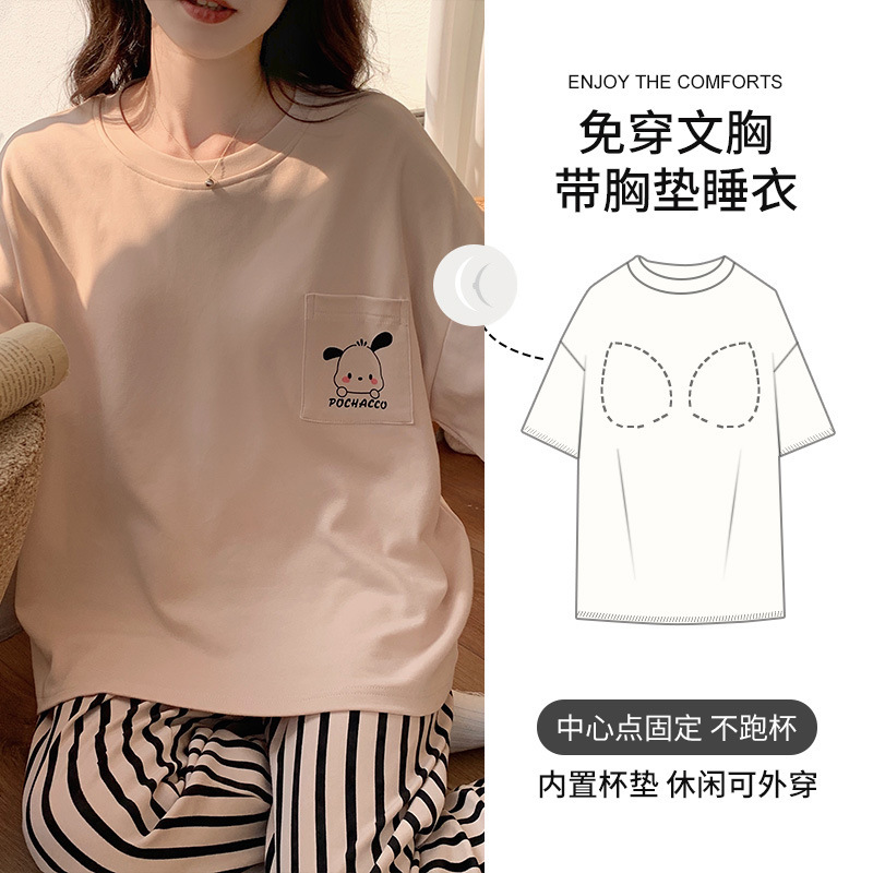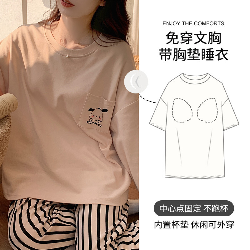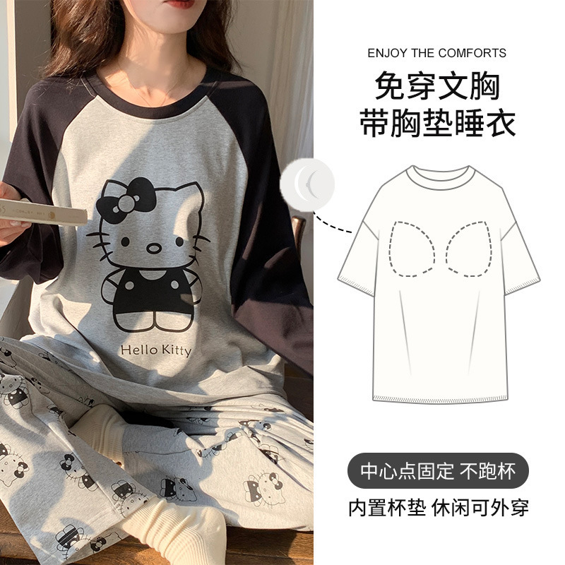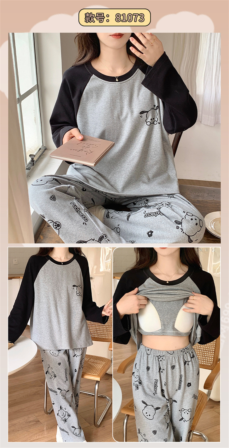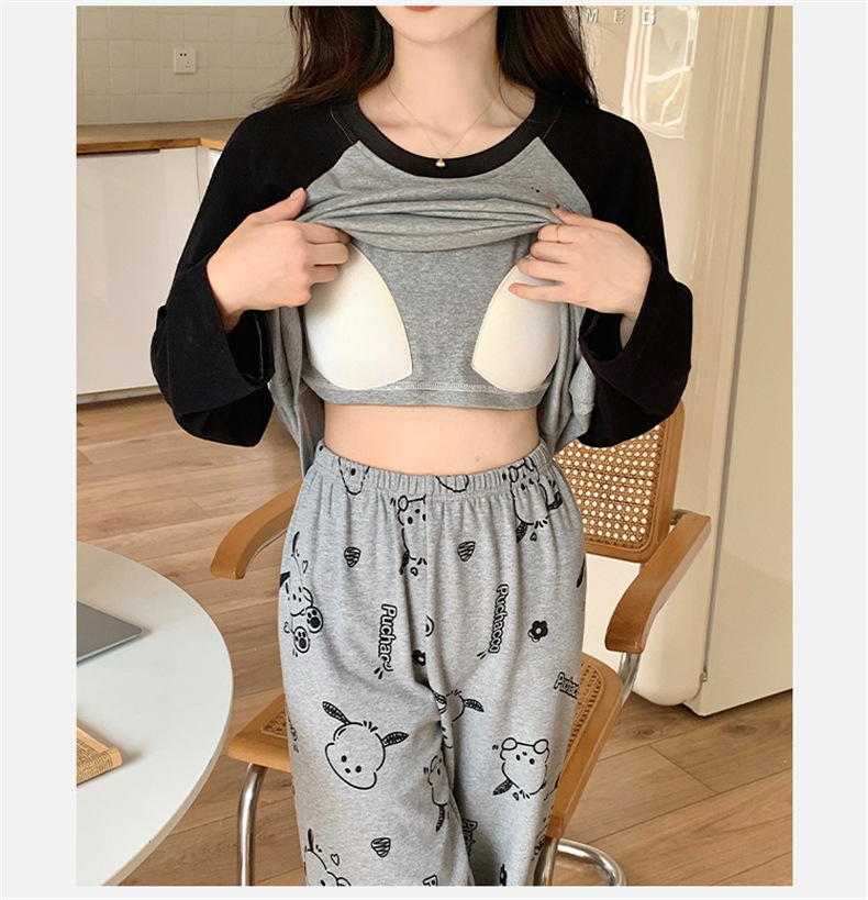 2025新款春秋季天长袖带胸垫一体睡衣女长裤冬款家居服套装可外穿