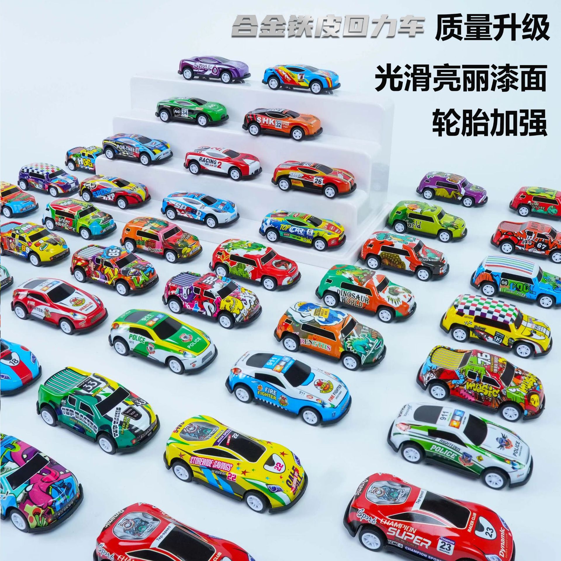 合金铁皮回力车批发儿童玩具礼物仿真模型摆件抖音爆款带回力汽车