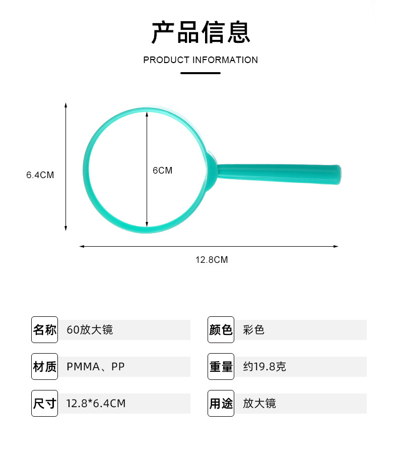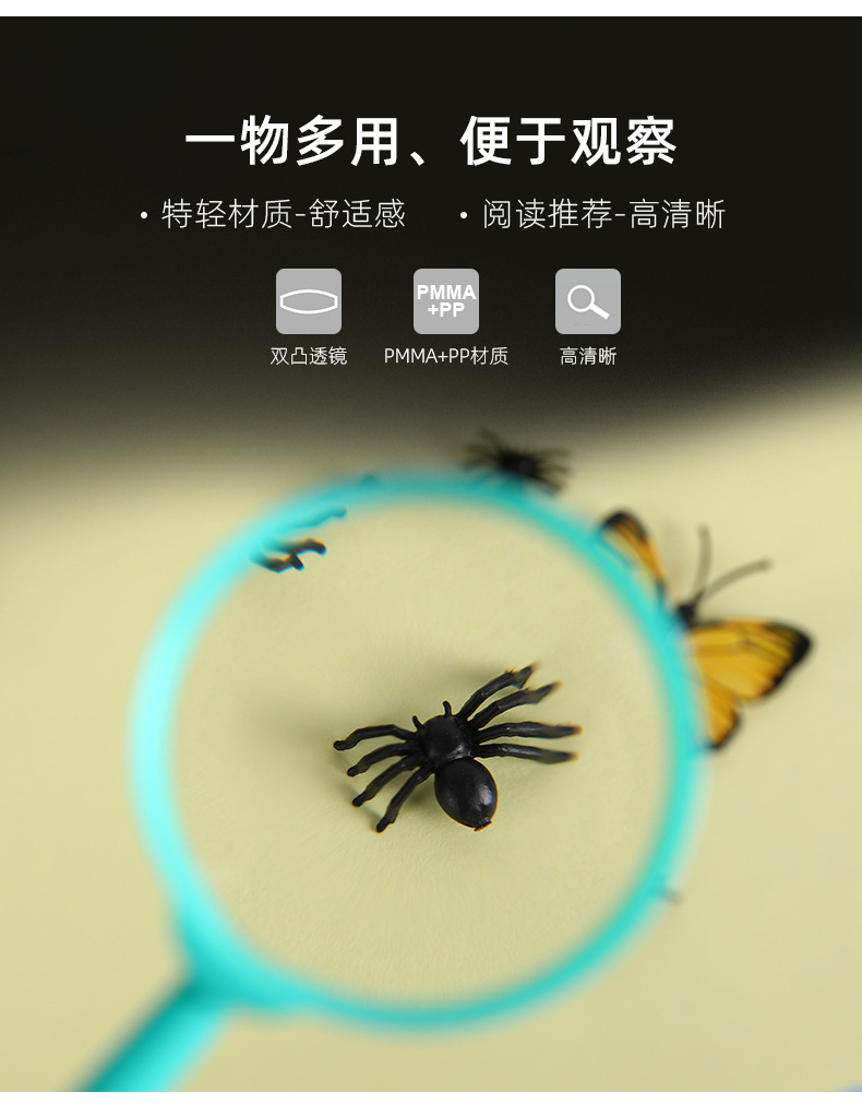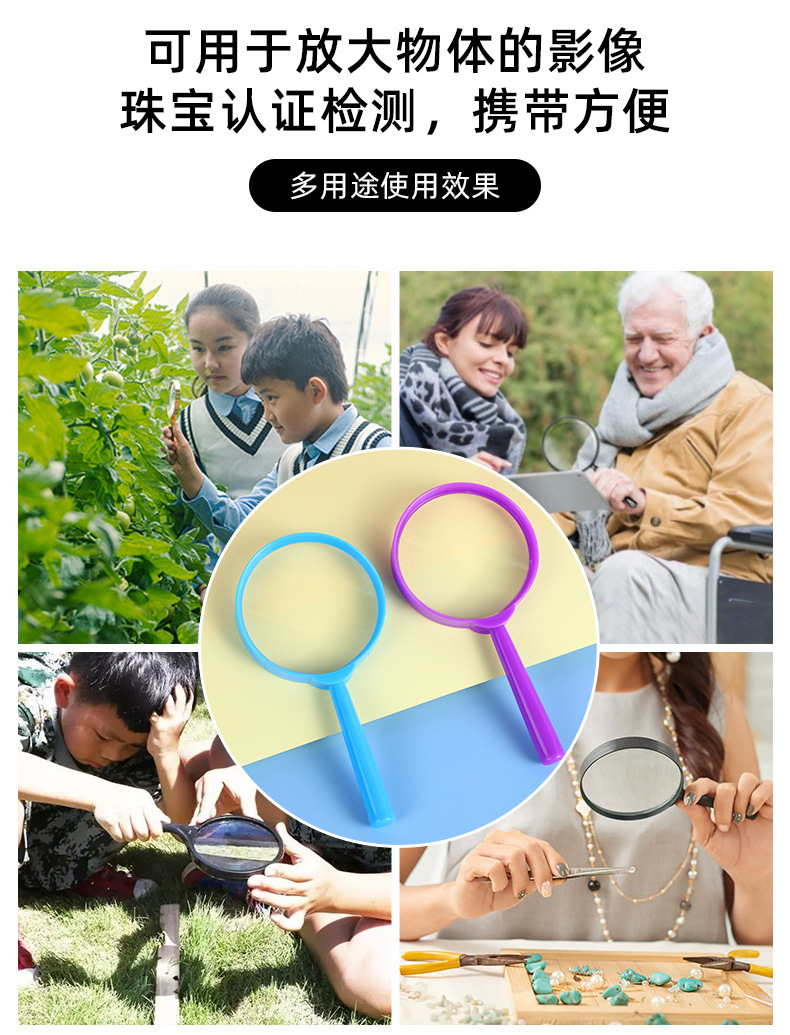 塑料25/40/50/60mm亚克力高清彩色 儿童便携式手持迷你放大镜批发