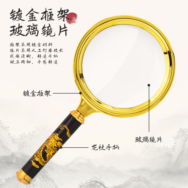 厂家直销80MM龙柄高级精美龙纹放大镜 10倍放大镜 礼品放大镜