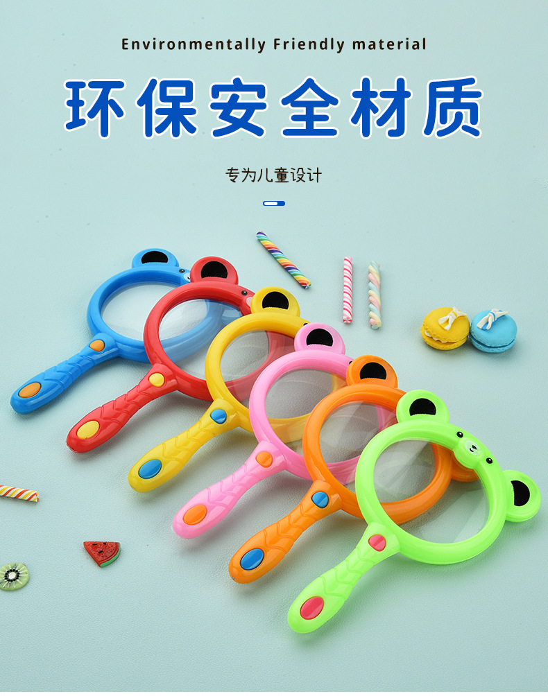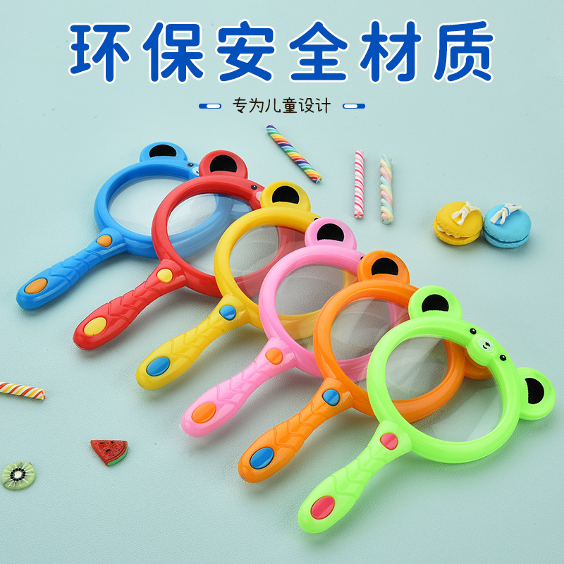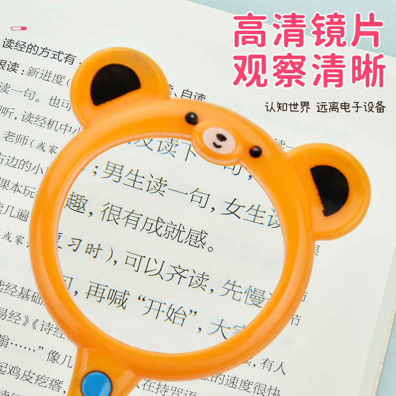 60MM马卡龙彩色卡通小熊手持放大镜儿童探索科教批发学习实验玩具