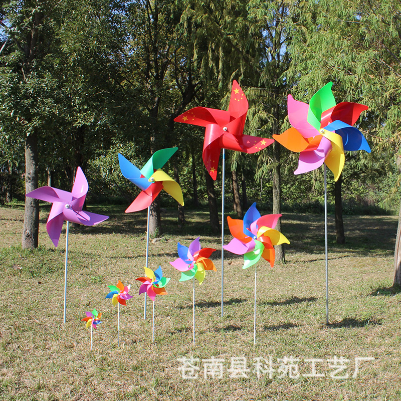 风车装饰户外旋转玩具儿童印刷幼儿园地推广告七彩大风车手工礼品