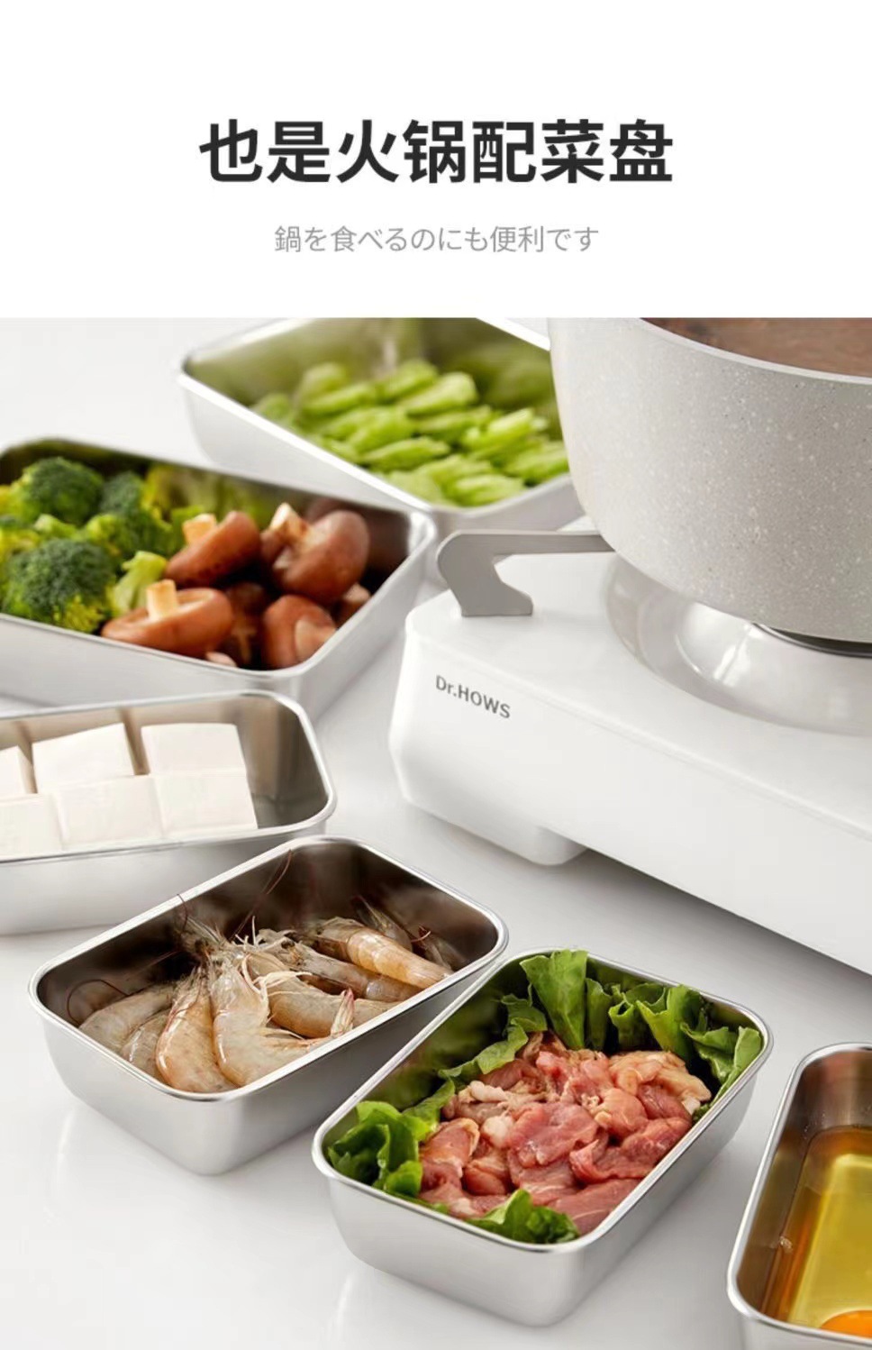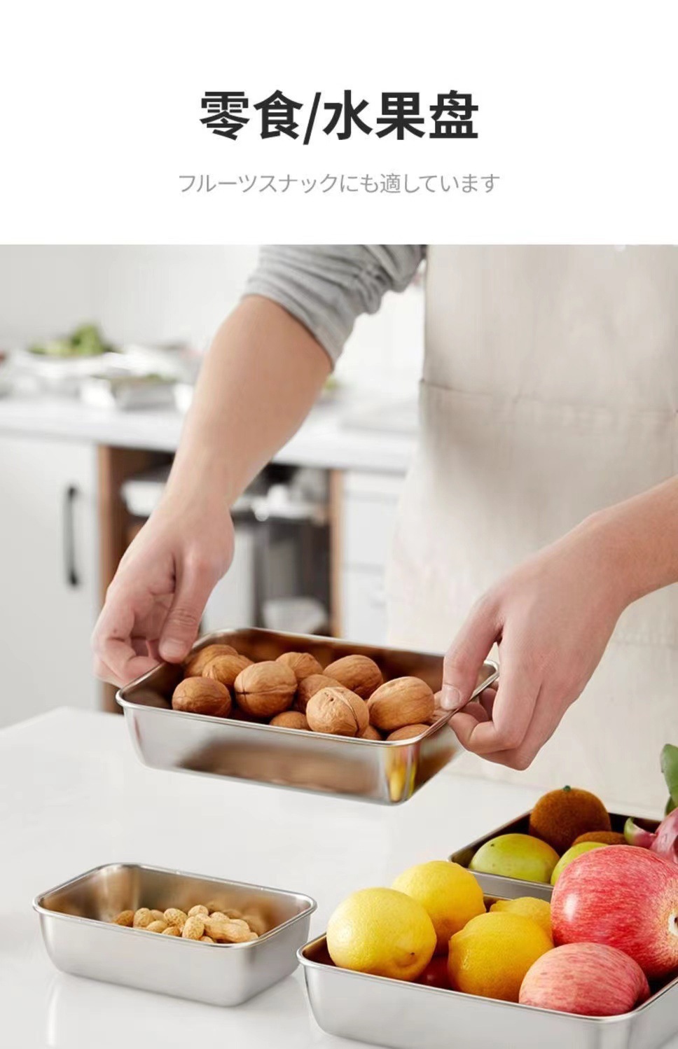 不锈钢方盘 厨房食物凉菜盘长方形托盘家用毛巾盘带盖保鲜分装盒