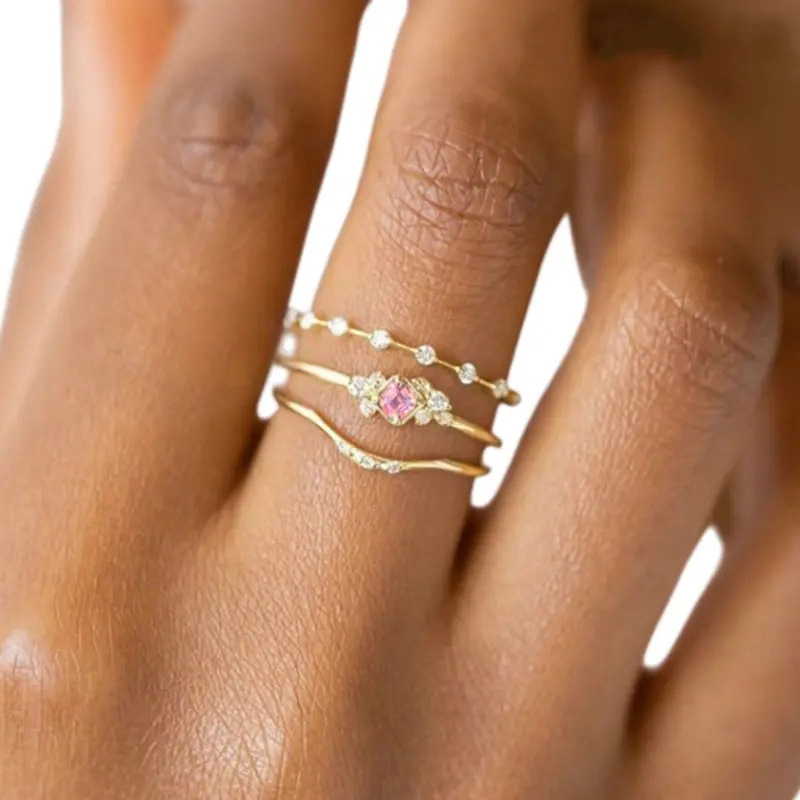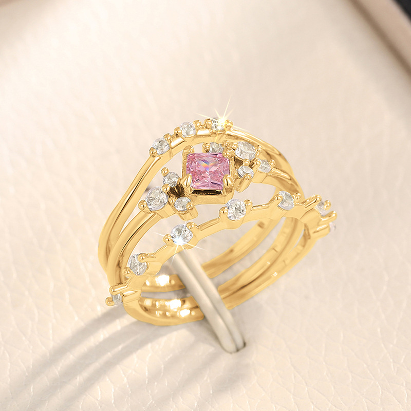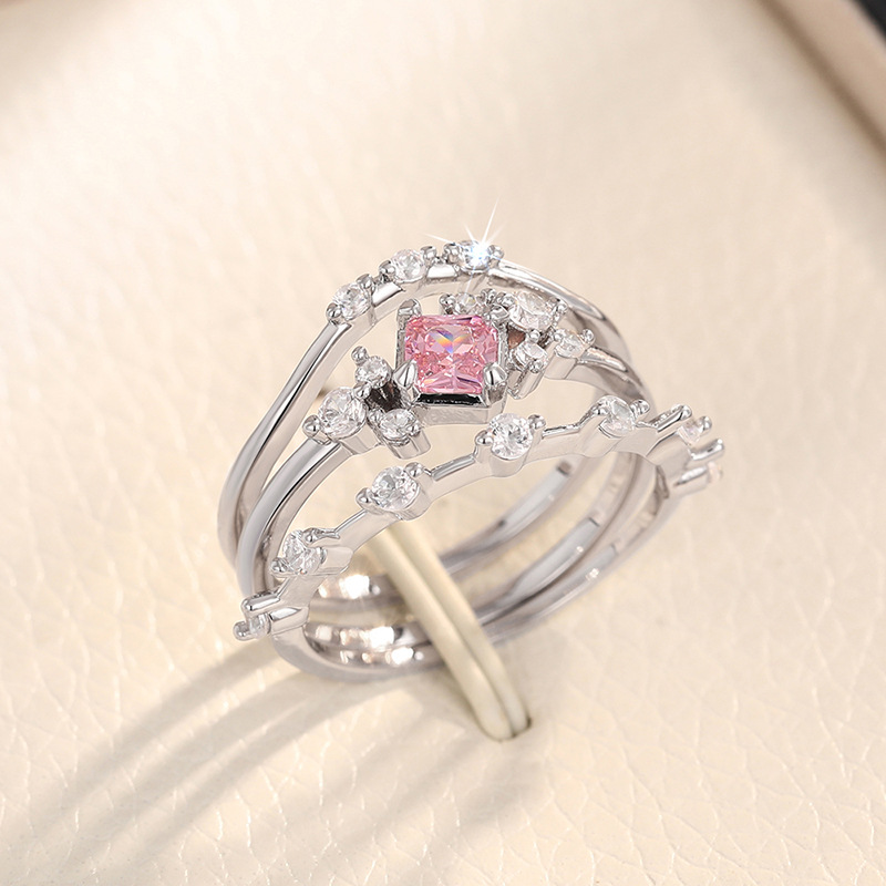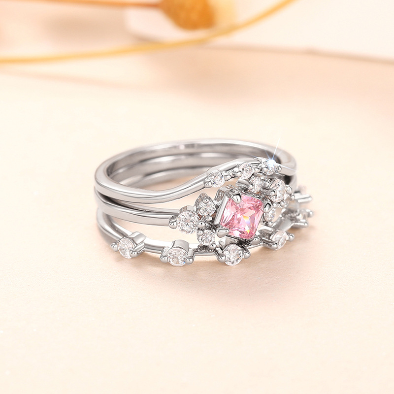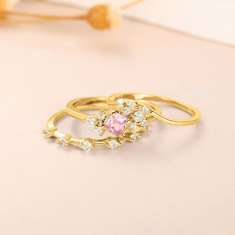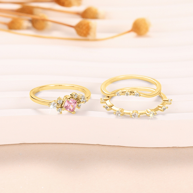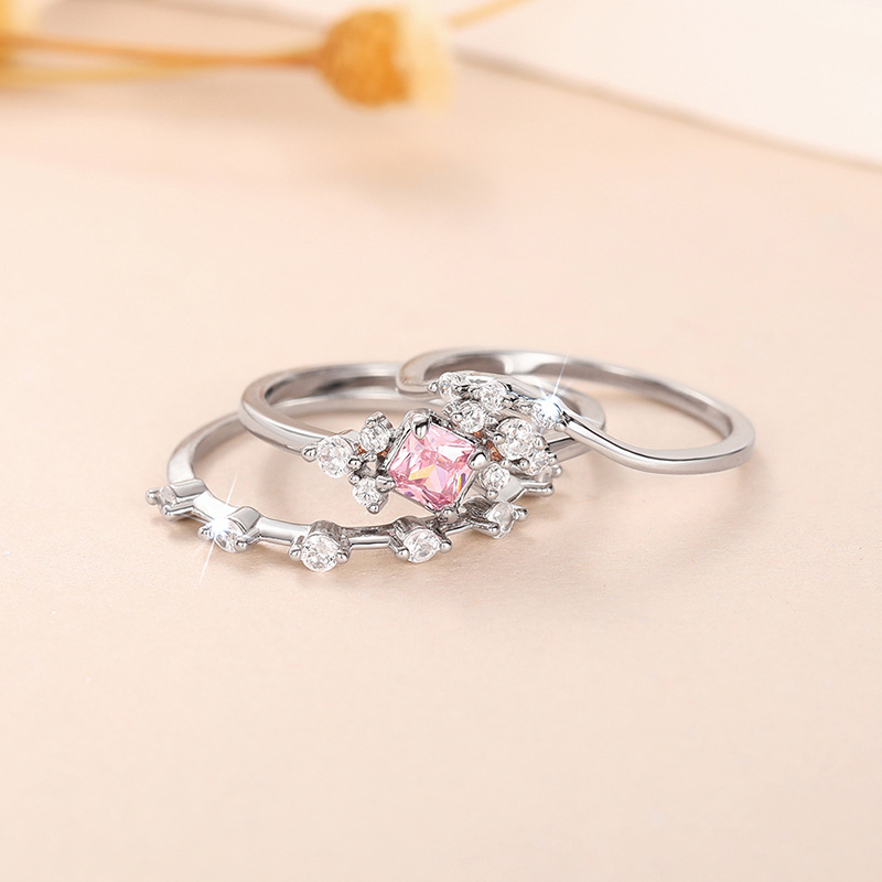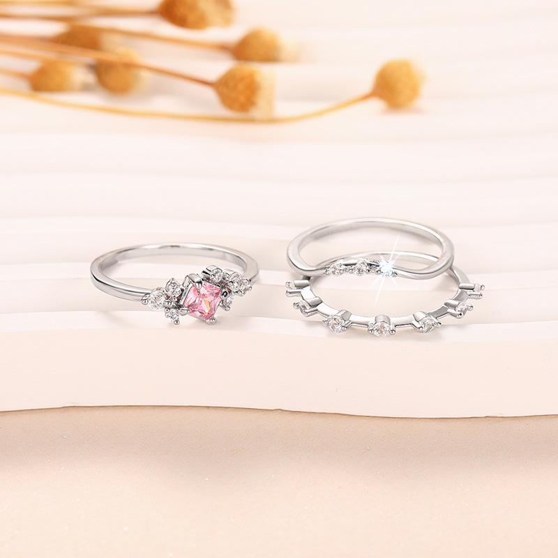 曹适欧美跨境wish公主戒指三件套 粉色锆石甜美指环女 小众日常款