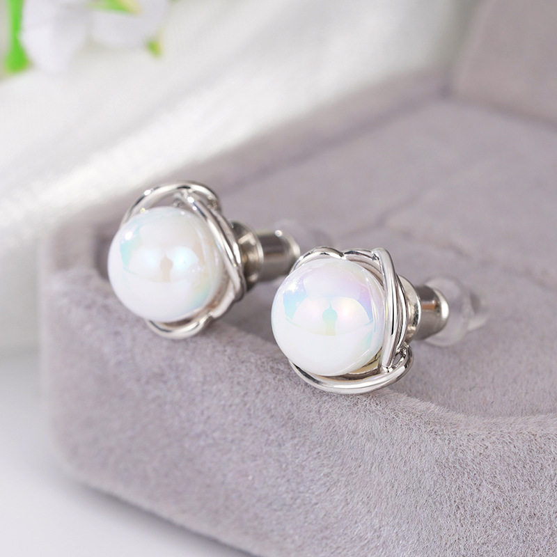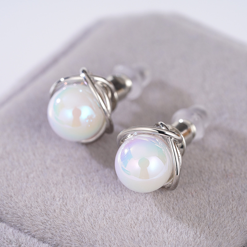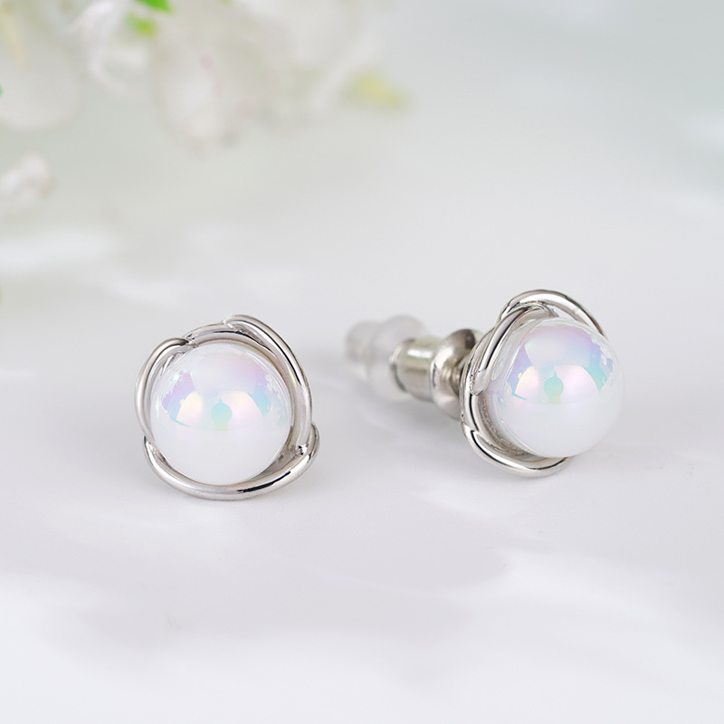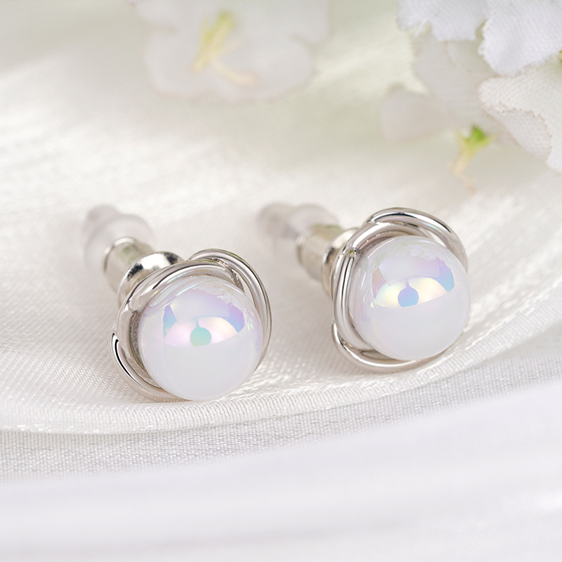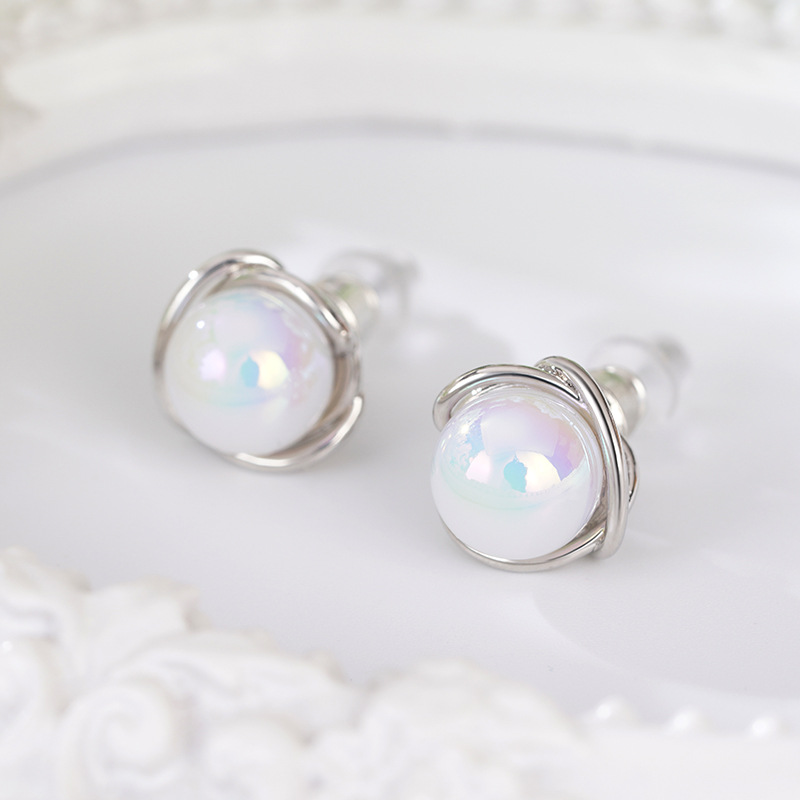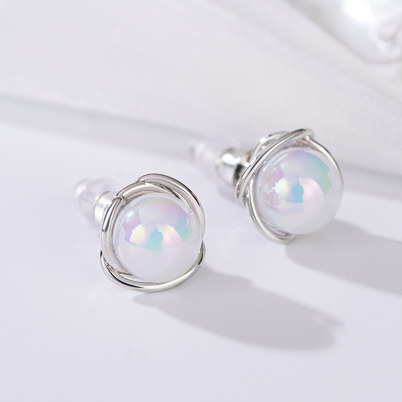 曹适欧美炫彩仿月光石耳饰女 时尚个性甜美饰品 线条设计感耳钉