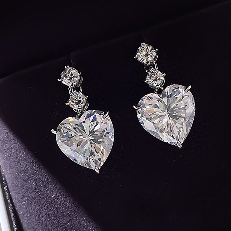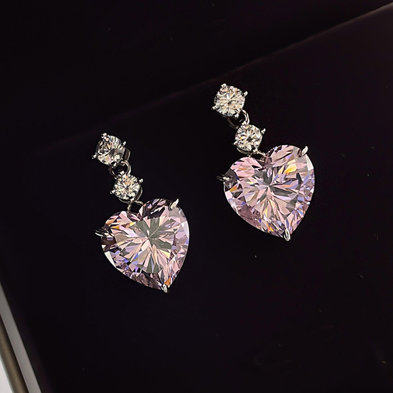 曹适欧美跨境爱心桃心耳环 镶嵌锆石甜美饰品 时尚优雅日常搭配款