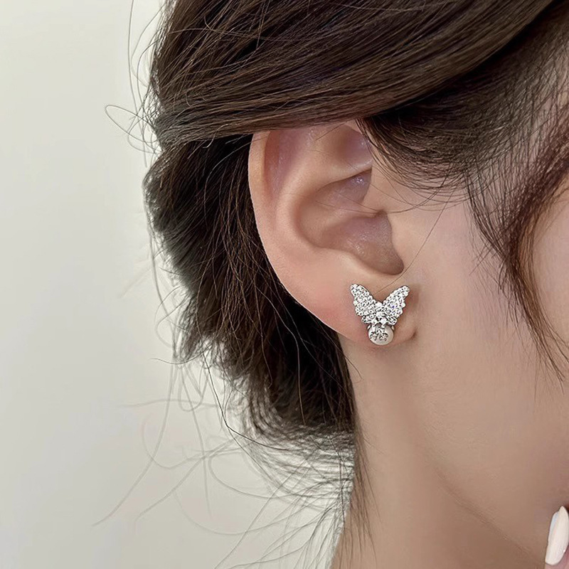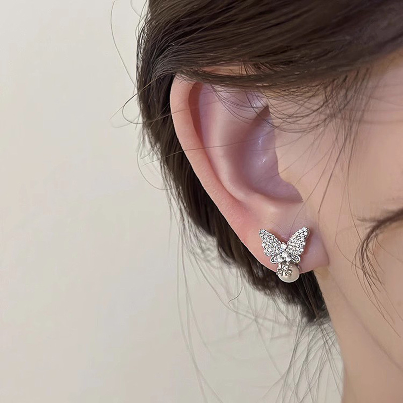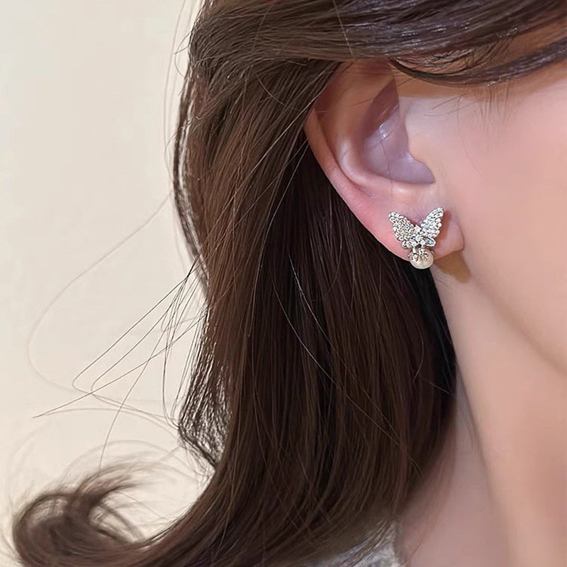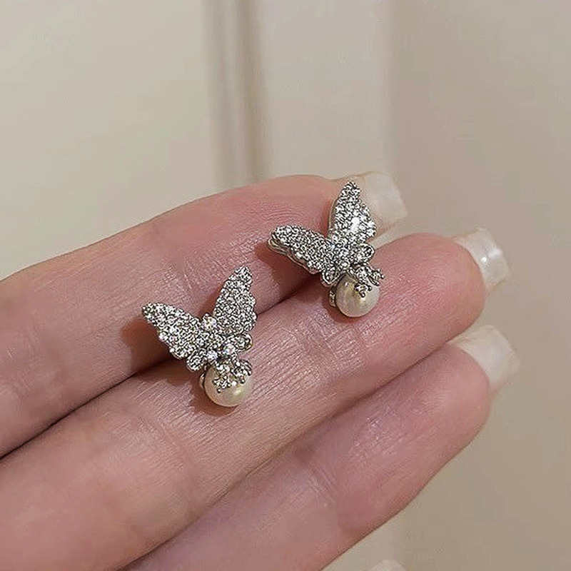 曹适欧美跨境蝴蝶甜美耳饰女 仿珍珠镶嵌锆石饰品 闪亮淑女设计感