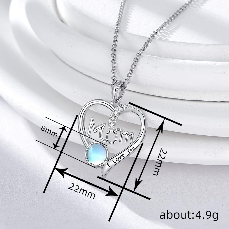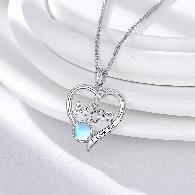 曹适跨境热卖仿月光石项链女 妈妈爱心设计饰品 优雅精美日常首饰