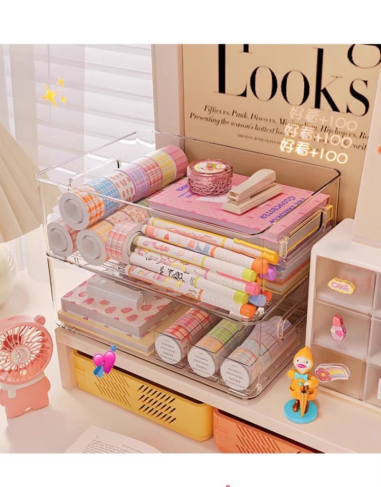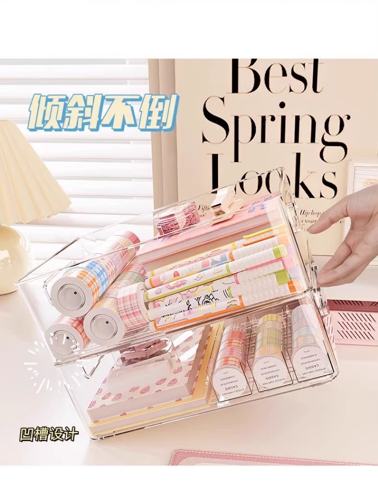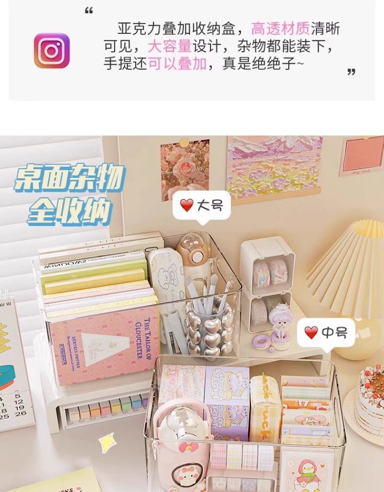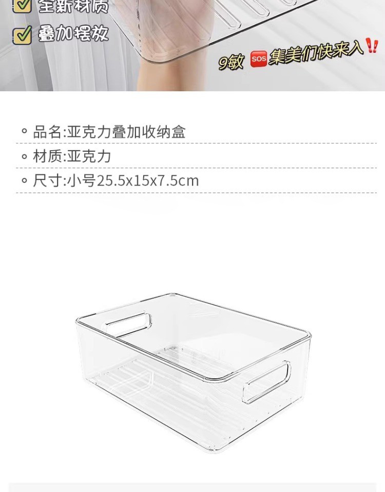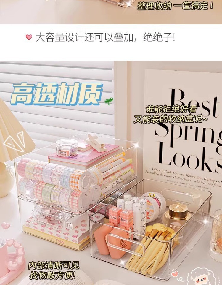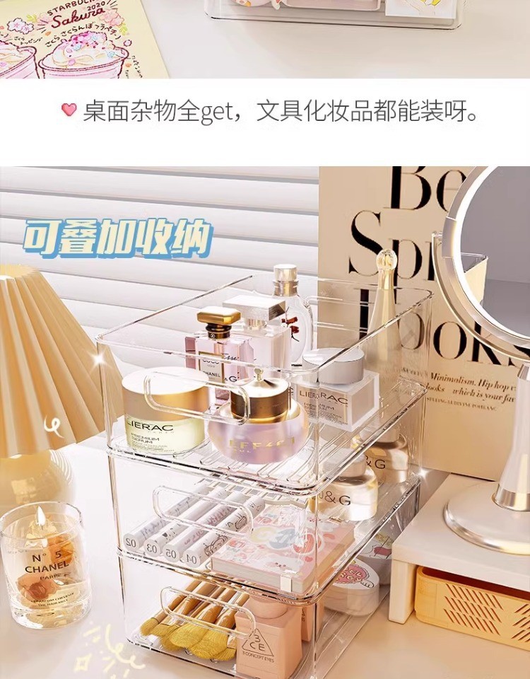 桌面收纳盒塑料亚克力置物架化妆品收纳筐透明可叠加盒子抽屉整理