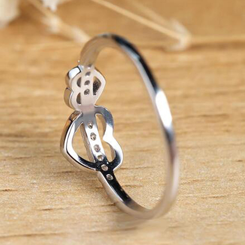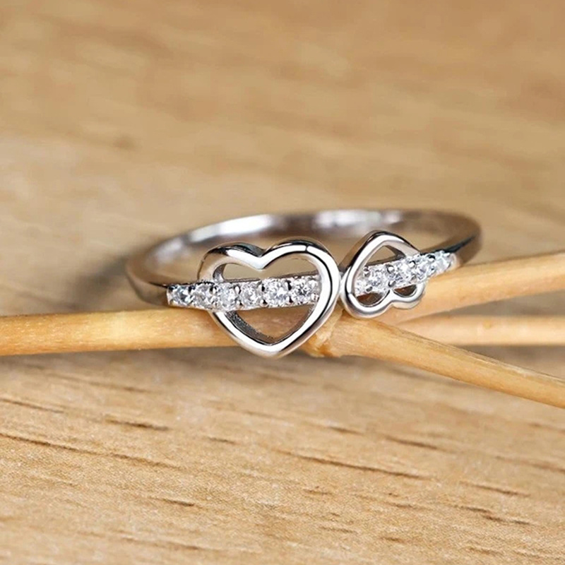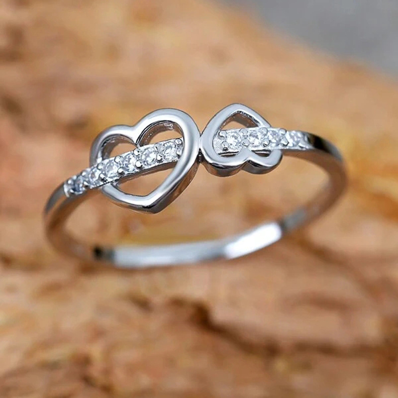 曹适欧美跨境爱心锆石指环女 精致甜美双桃心戒指 镶嵌锆石款首饰