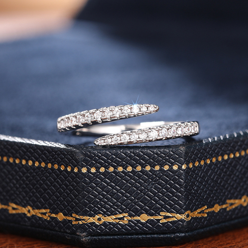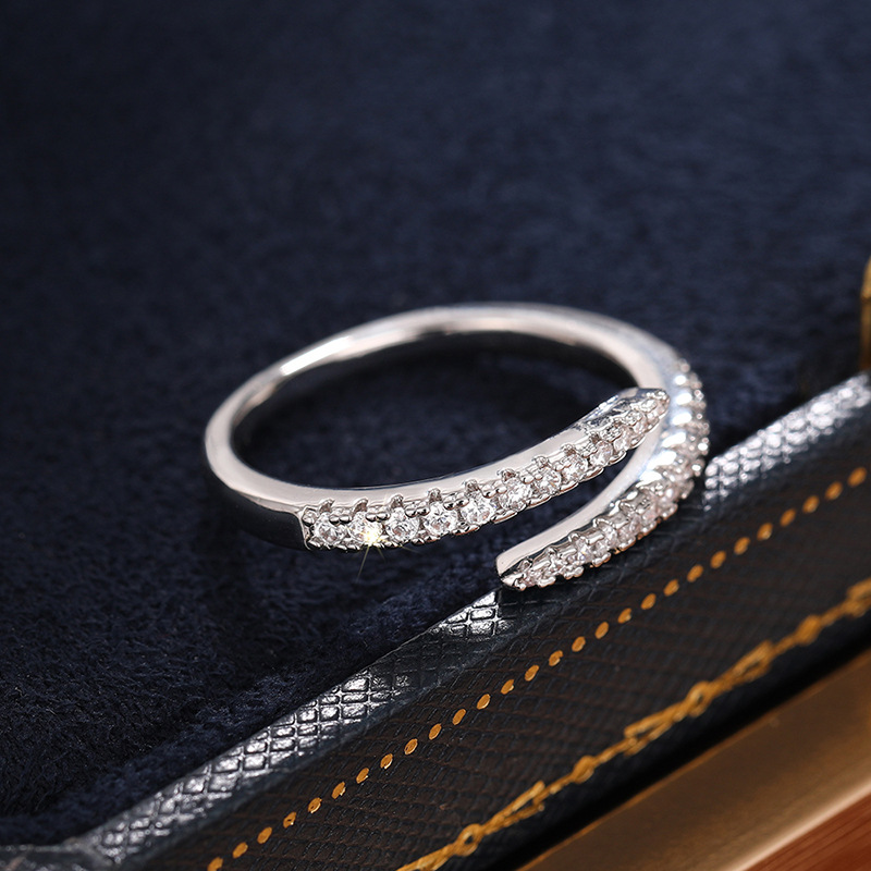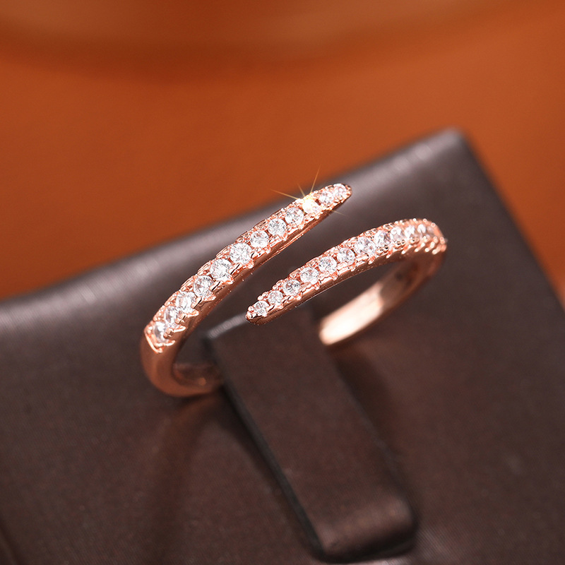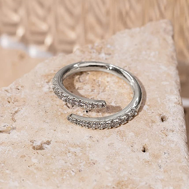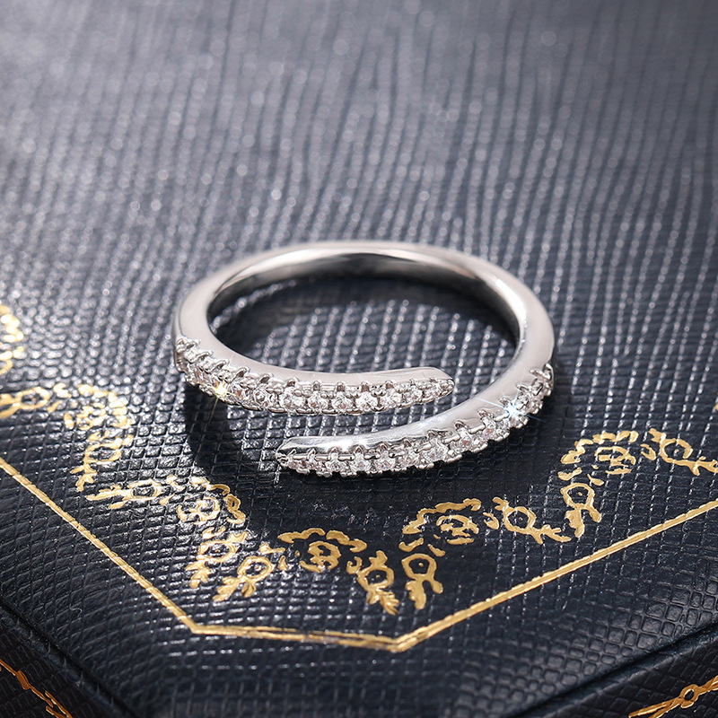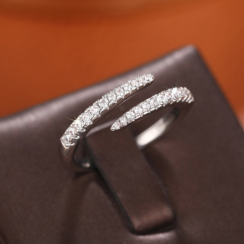 曹适欧美跨境简约锆石指环女 开口可调节时尚戒指 日常佩戴流行款