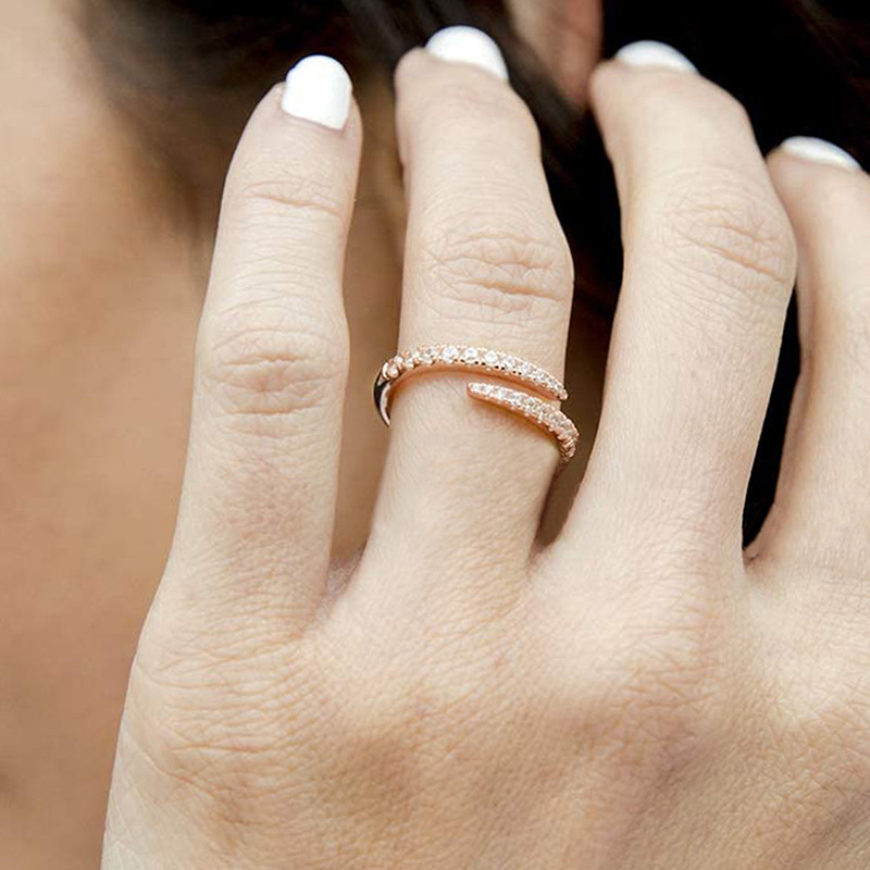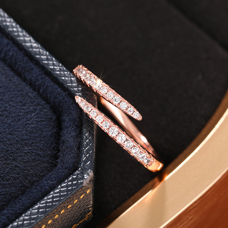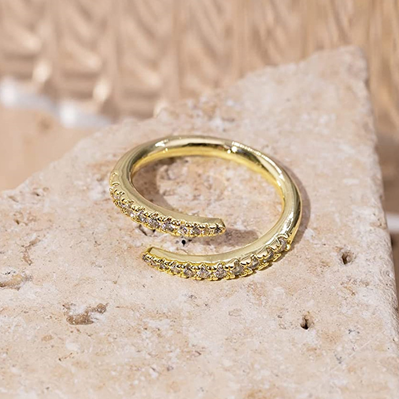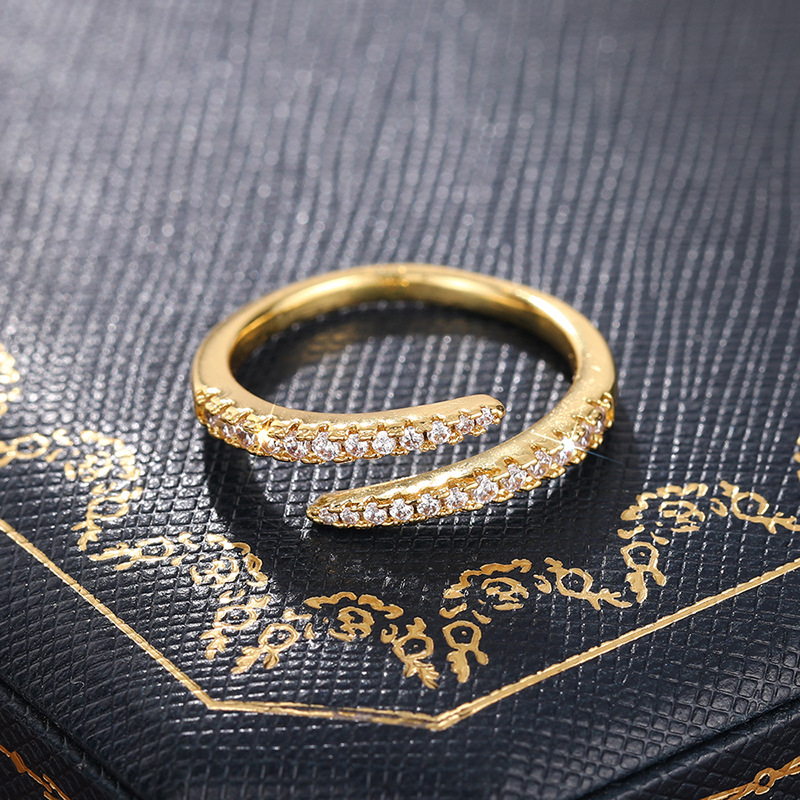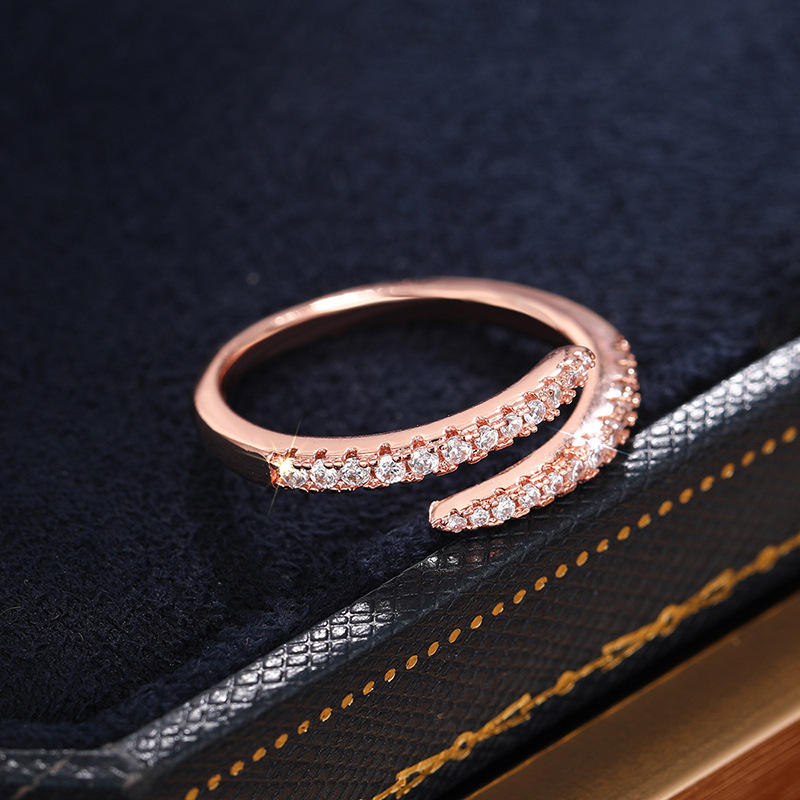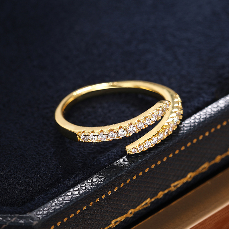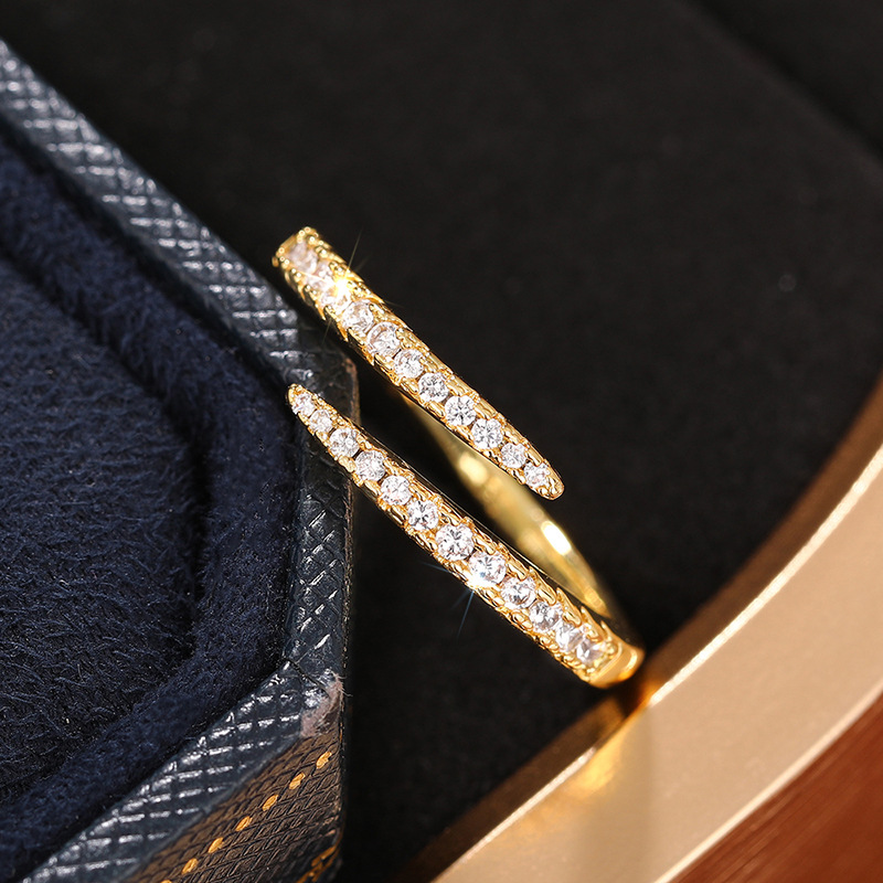 曹适欧美跨境简约锆石指环女 开口可调节时尚戒指 日常佩戴流行款