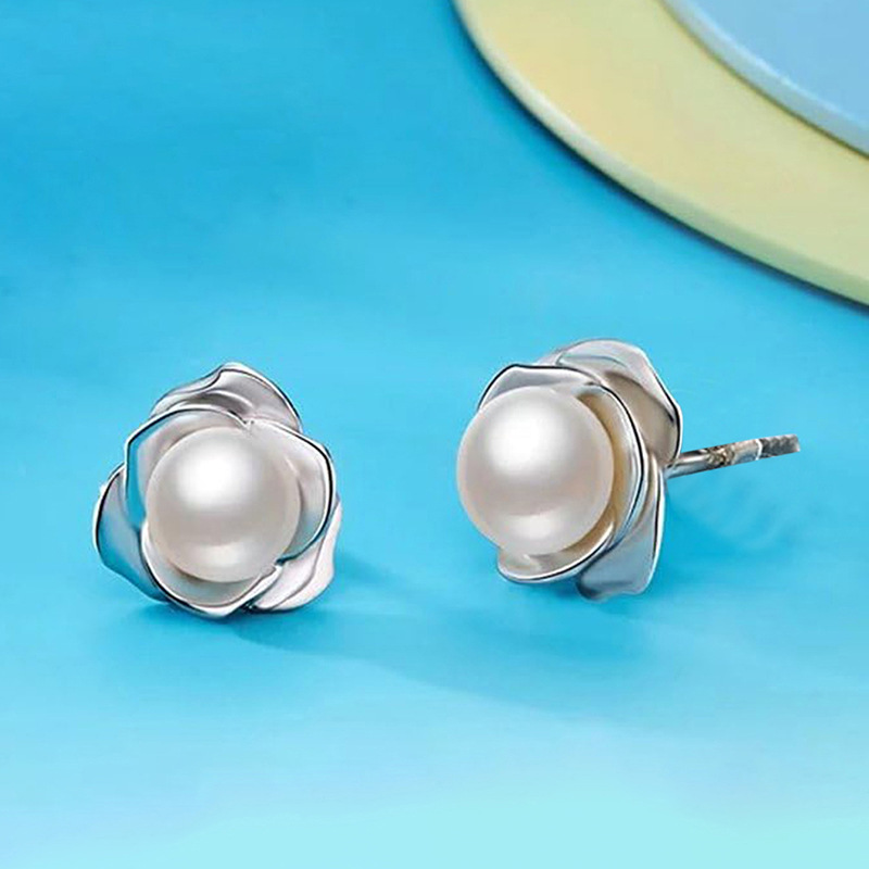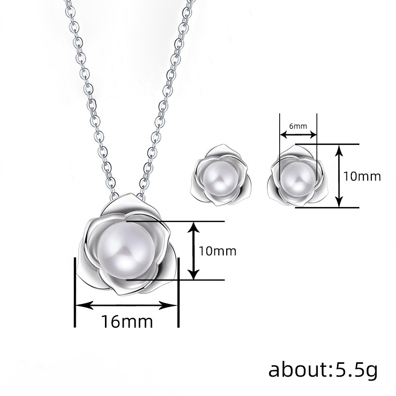 曹适欧美跨境珍珠花卉首饰套装 优雅清新精致耳饰 田园日常款项链