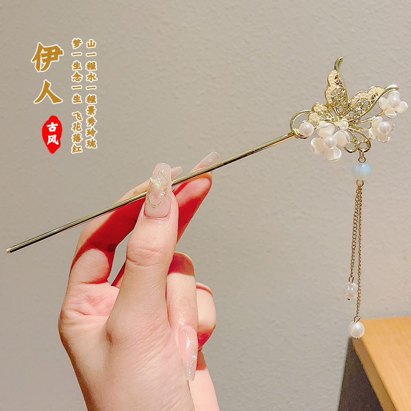 古风花朵流苏发簪女新中式现代盘发簪子简约汉服旗袍发钗头饰步摇