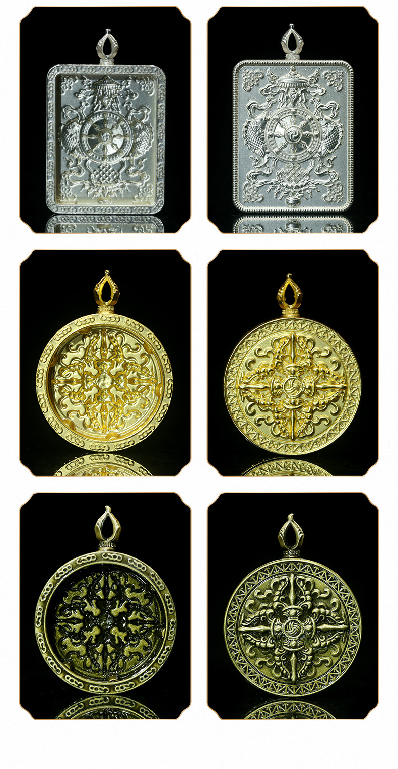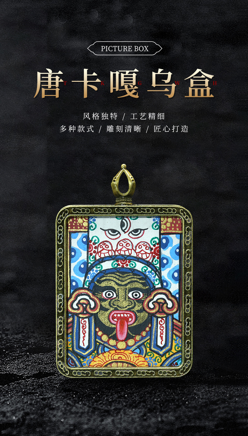 西藏藏式拉姆扎基五台山唐卡盒嘎乌盒吊坠合金现货批发小唐卡原创