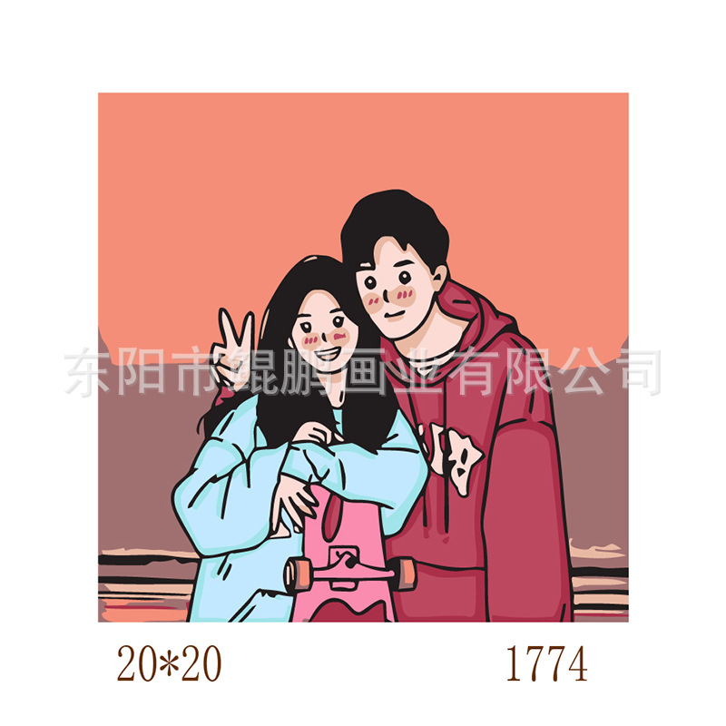 diy数字油画 厂家直销批发情侣系列动漫卡通儿童填充手工油彩画