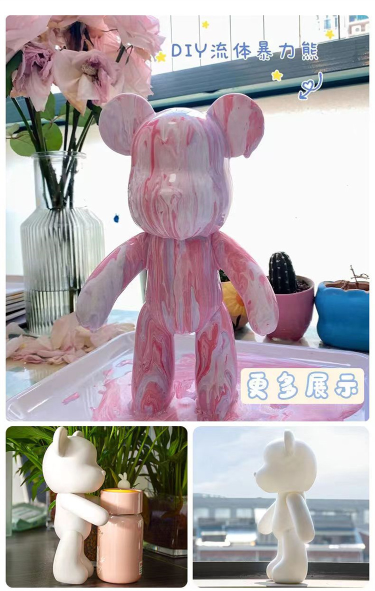 网红暴力熊流体熊白胚批发网红手工DIY摆件流体兔积木熊工厂货源