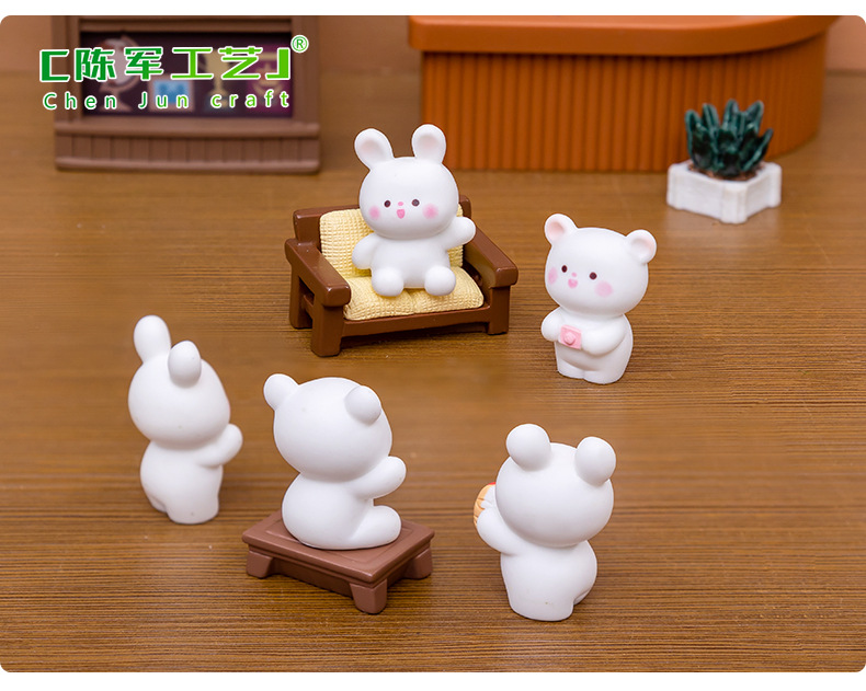 微景观创意可爱小兔子小熊公仔 DIY装饰品配件汽车桌面迷你小摆件