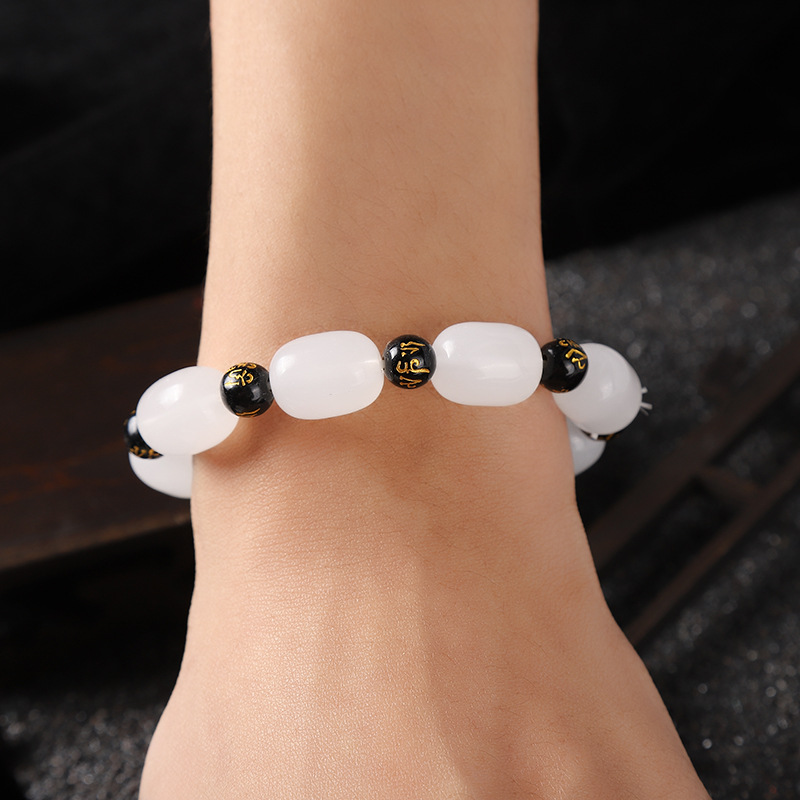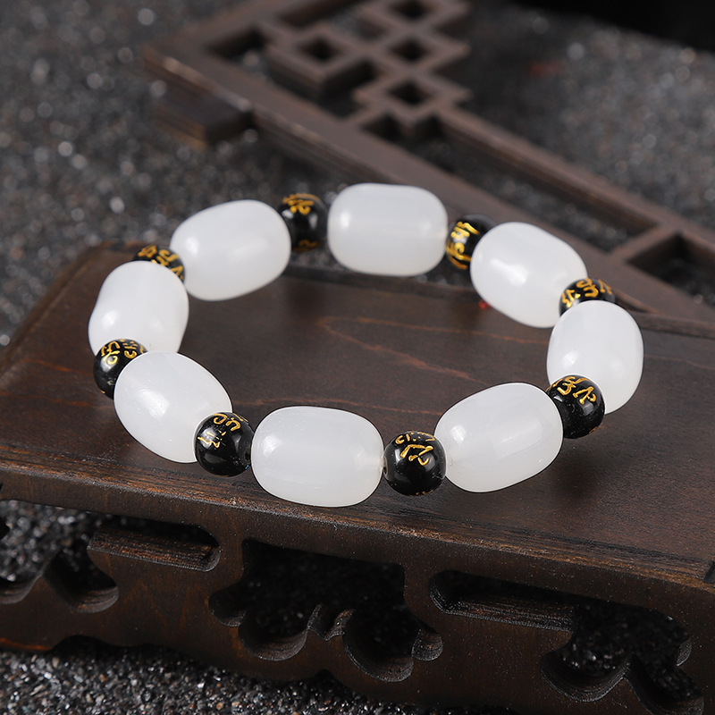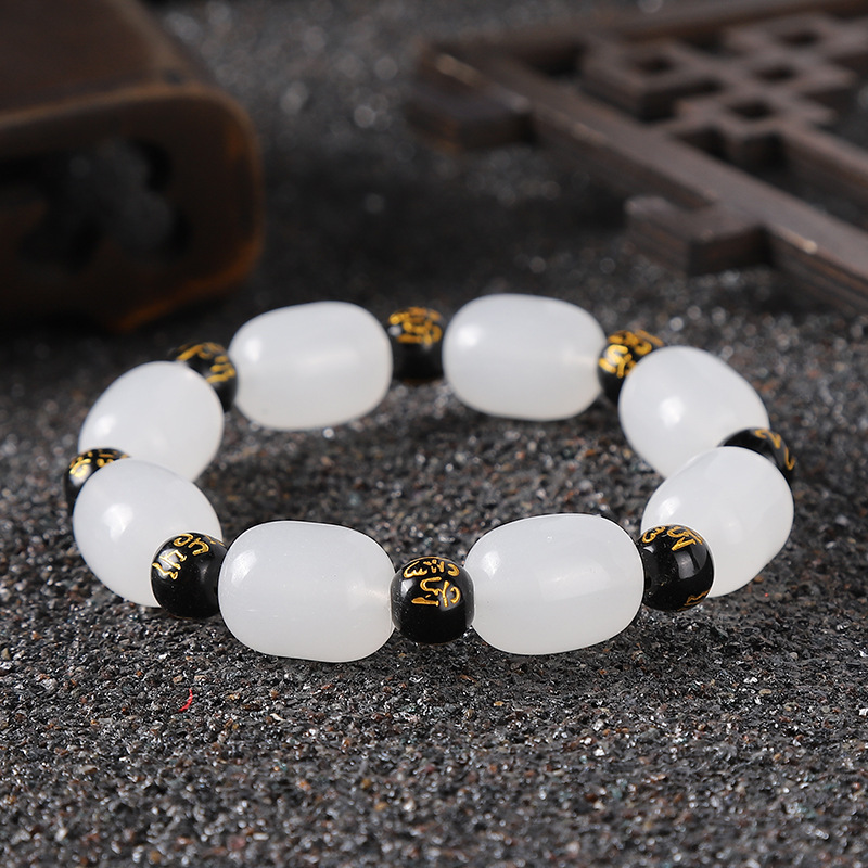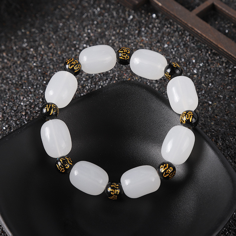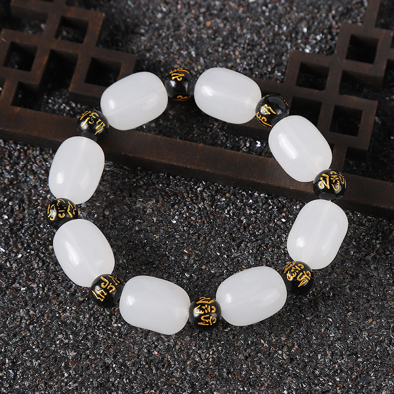 直播专供热卖仿汉白玉手串手串厂家直销仿新疆和田玉手串六字真言