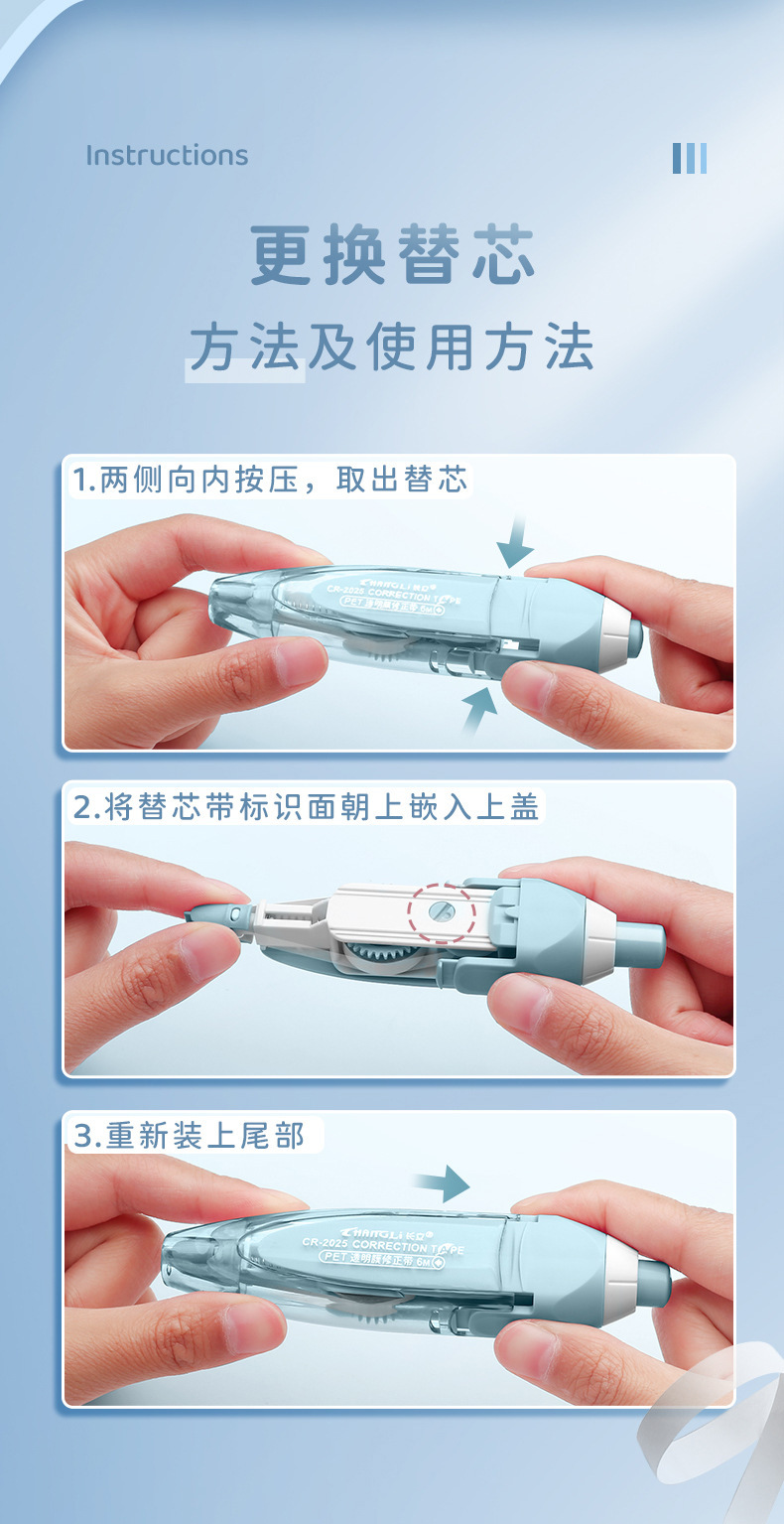 长立按动修正带批发烟熏可换替芯高颜值ins日系便携涂改带文具