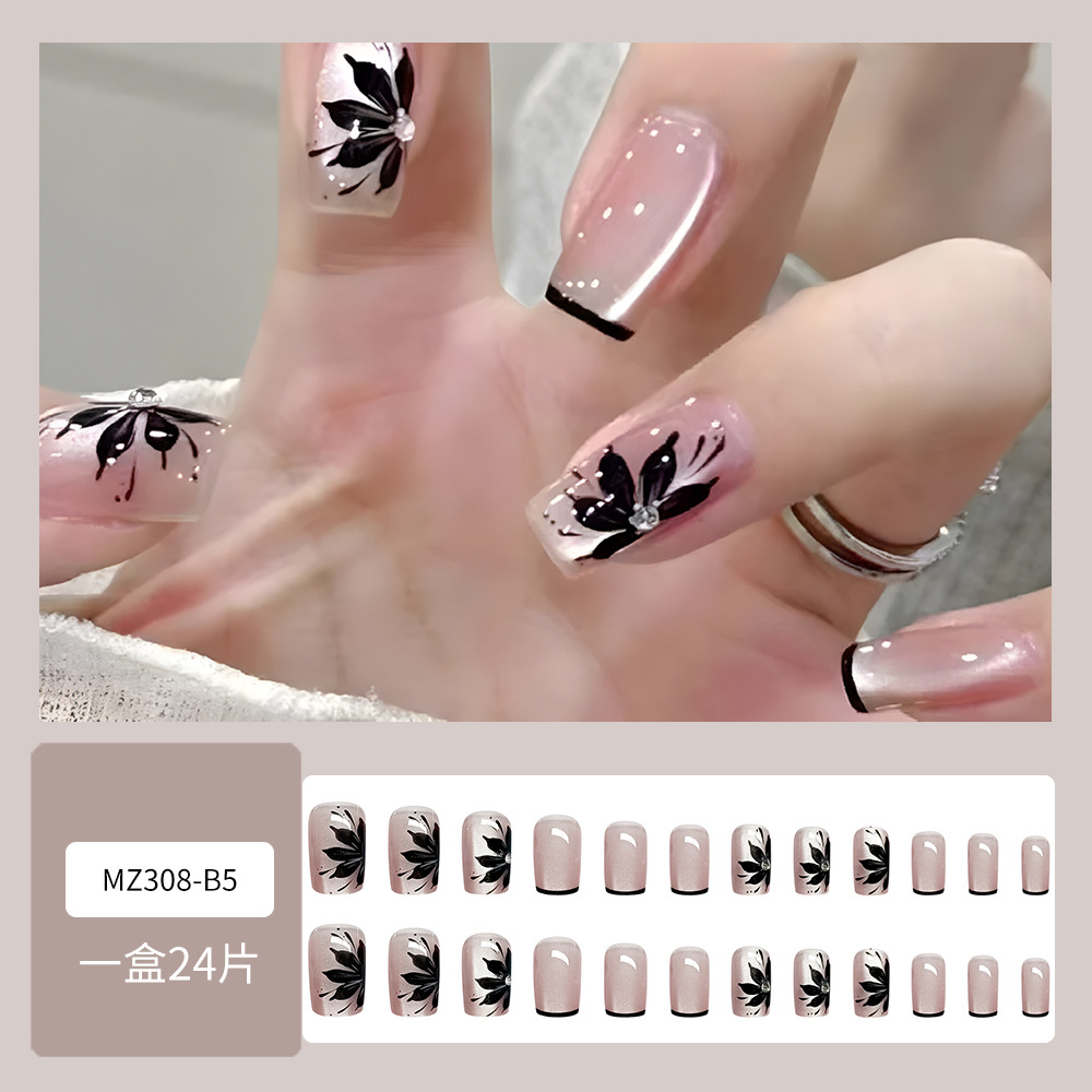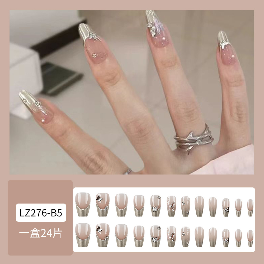 手工穿戴甲批发小红书抖音爆款银闪蝴蝶美甲甲片穿戴式指甲贴片