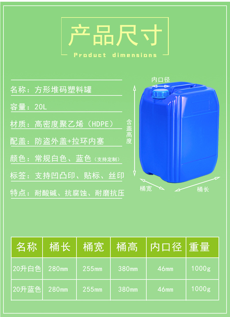 20升食品级堆码塑料桶手提小口密封包装桶20公斤耐酸碱工业化工桶