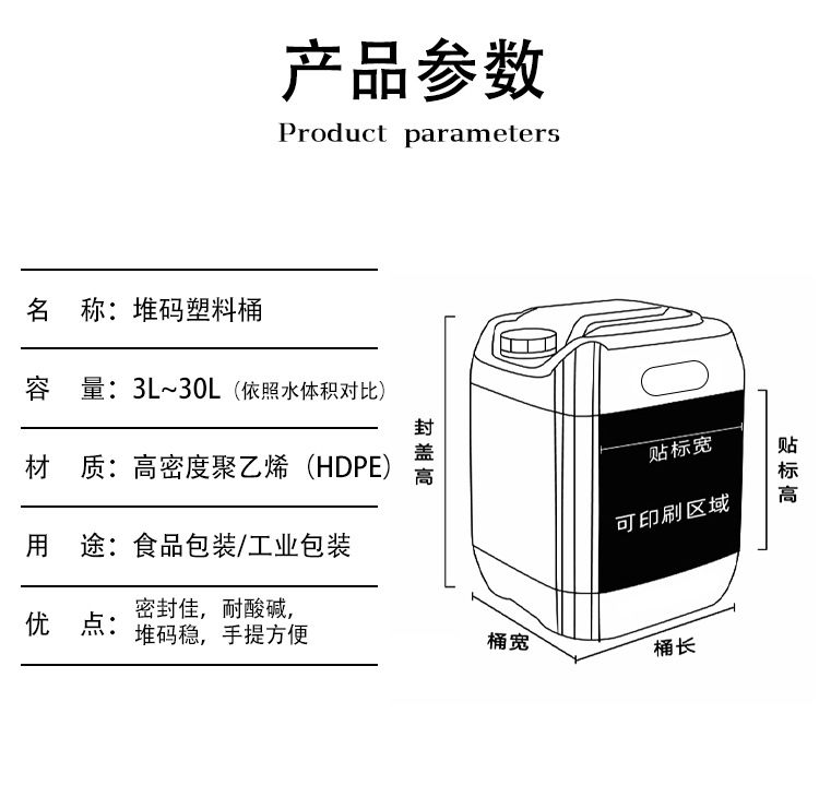 食品级塑料桶手提方形 小口密封包装塑胶堆码桶 耐酸碱工业化工桶
