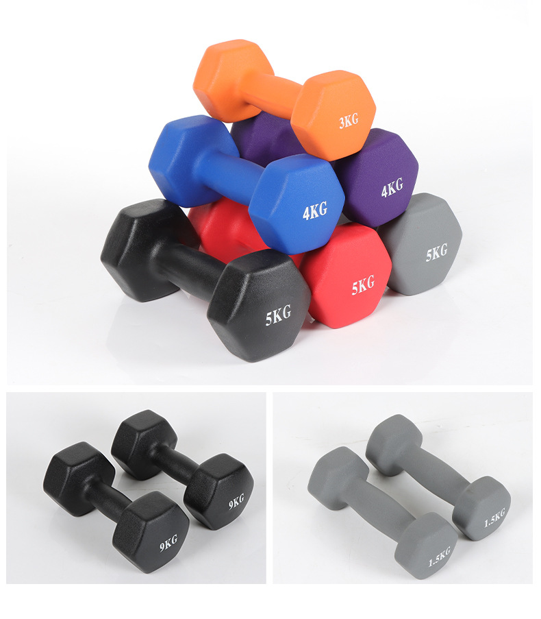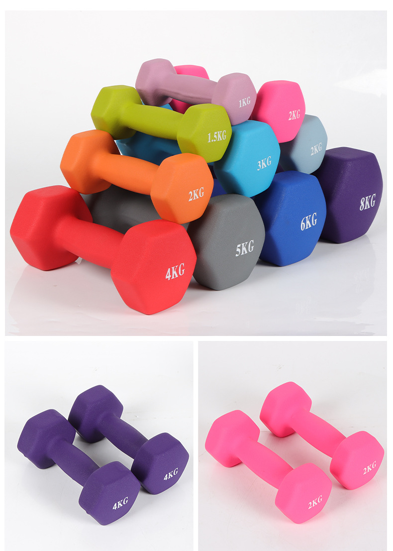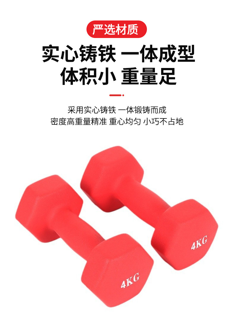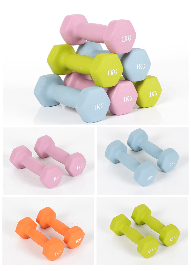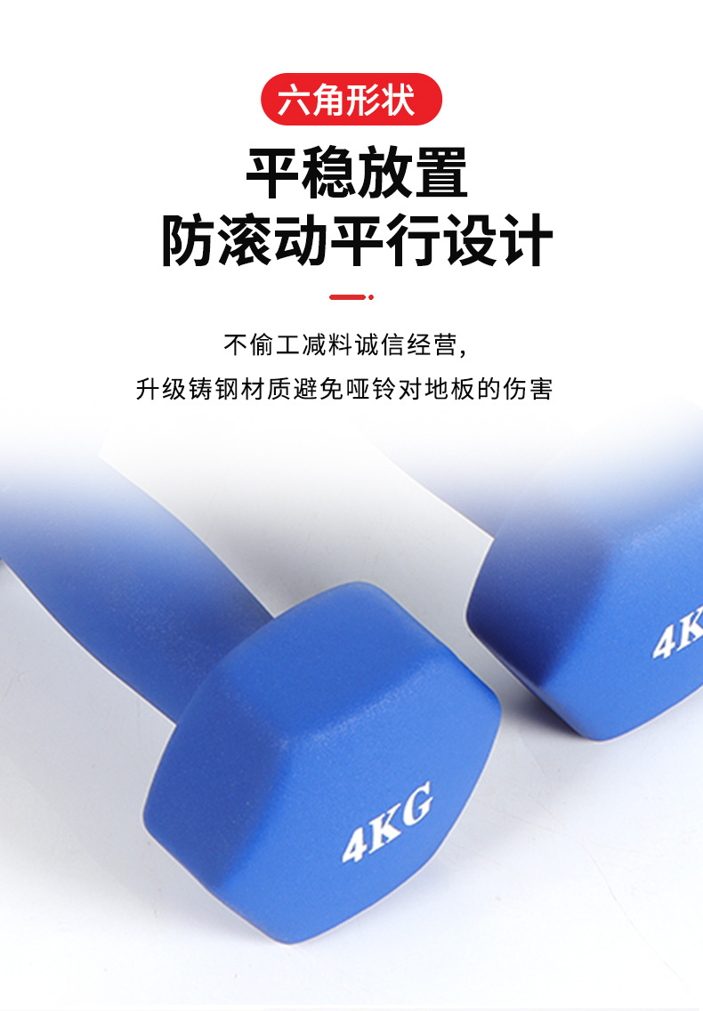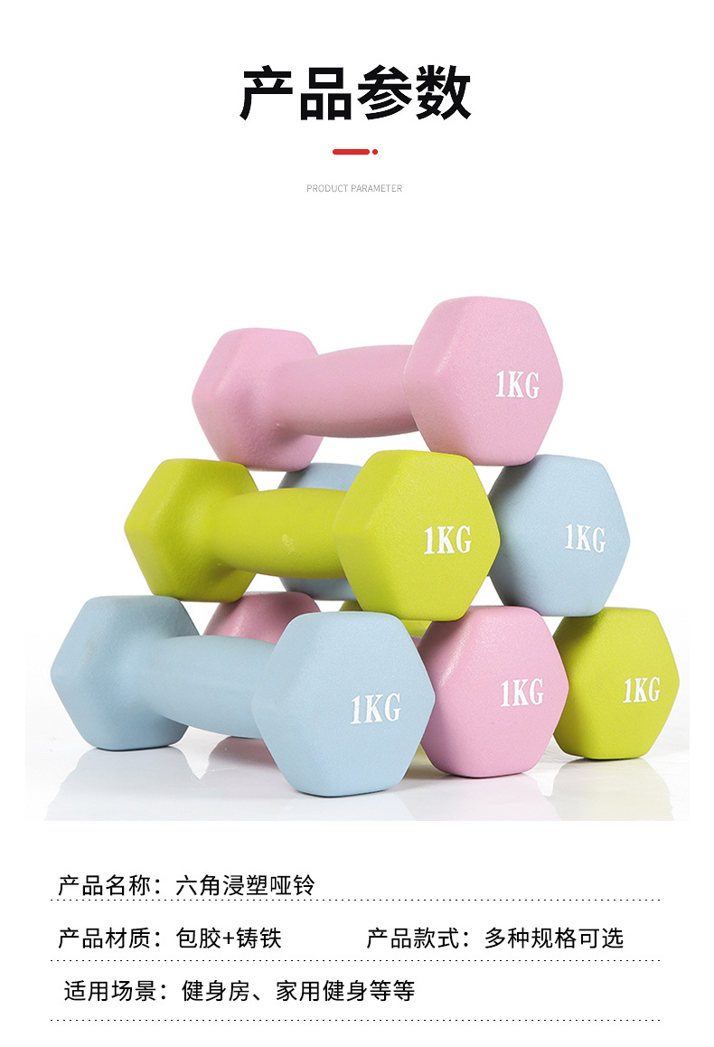 跨境代发女士六角浸塑哑铃家用健身器材实心铸铁六角哑铃浸塑哑铃
