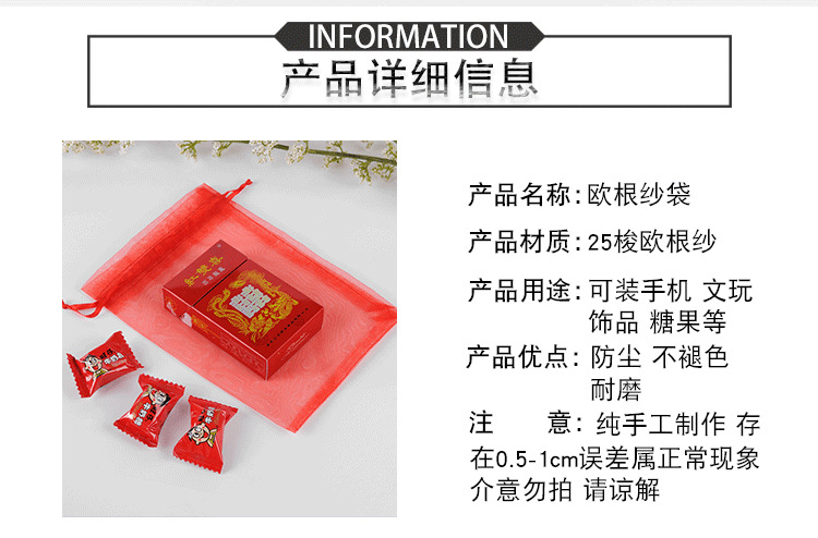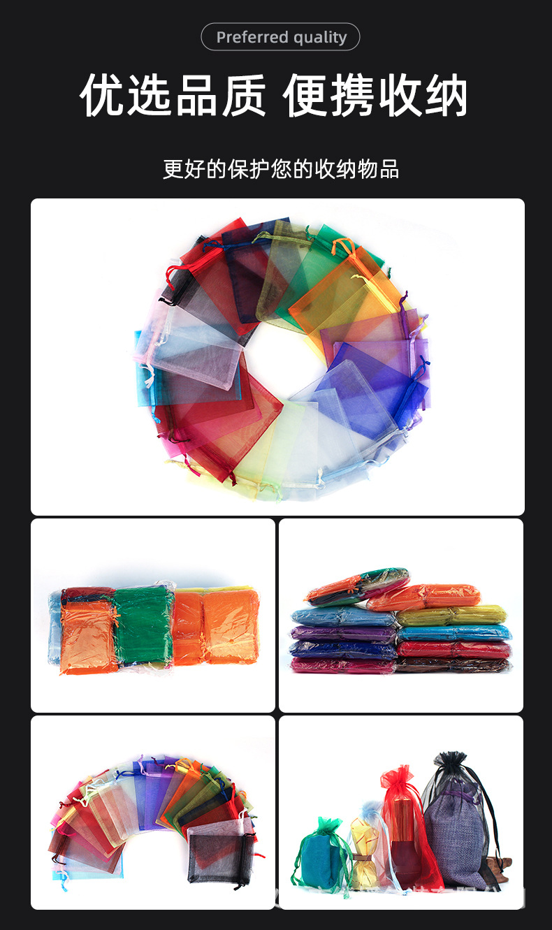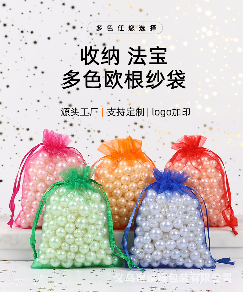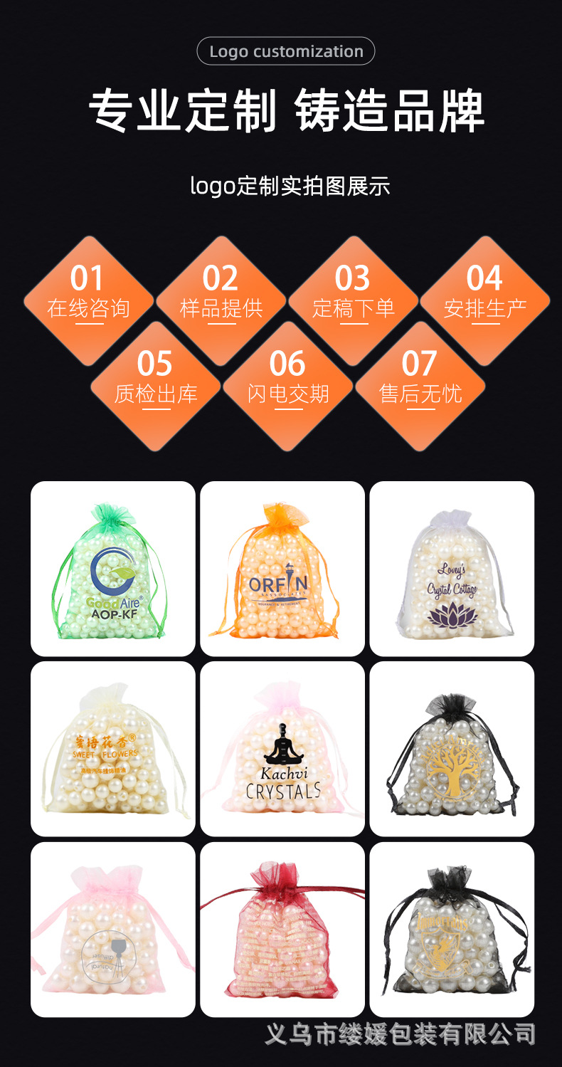 礼品纱袋抽绳欧根纱布袋子茉莉花香包装印logo喜糖袋白防虫网纱袋