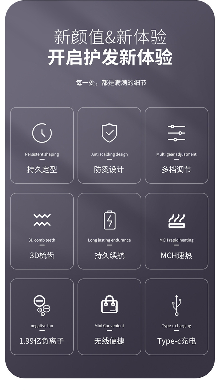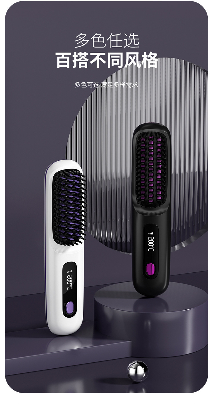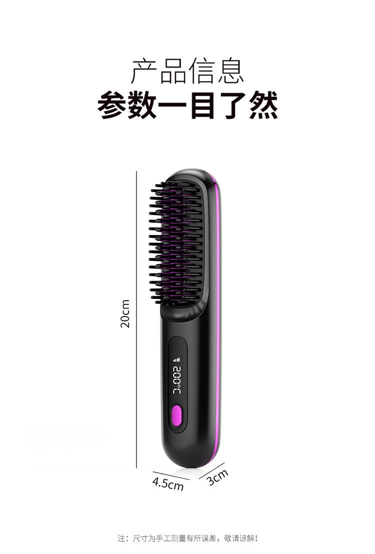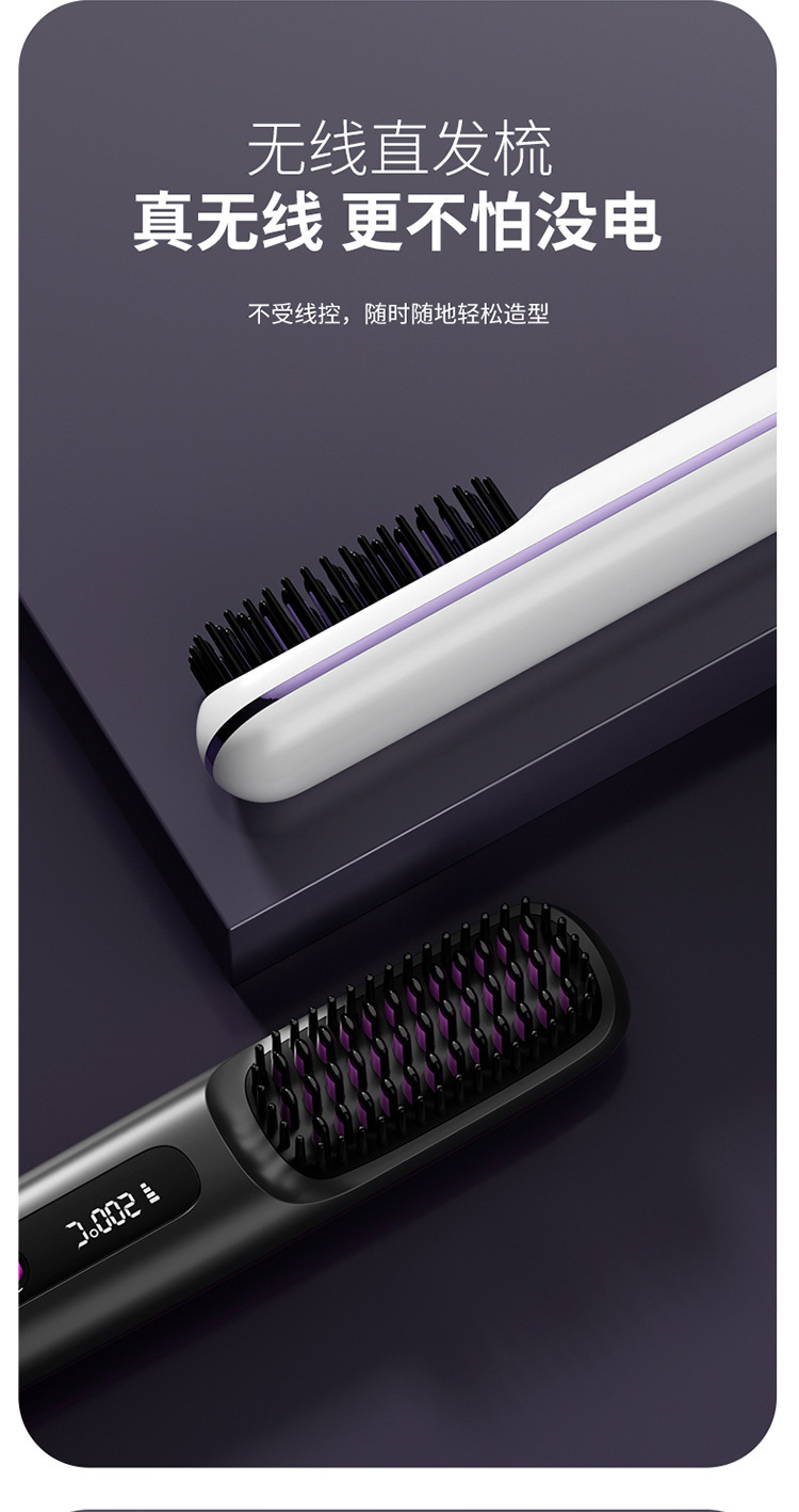 跨境新款充电直发梳便携时尚负离子直发棒梳子无线柔顺护发直发梳