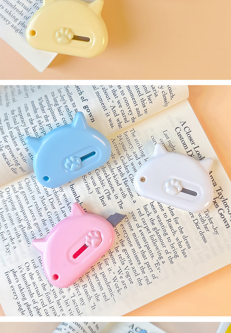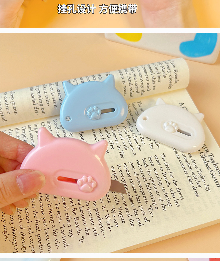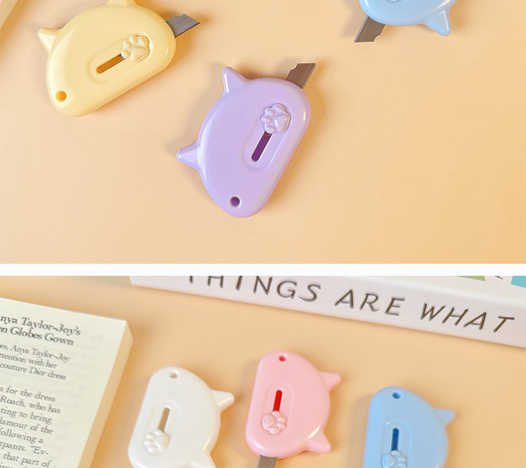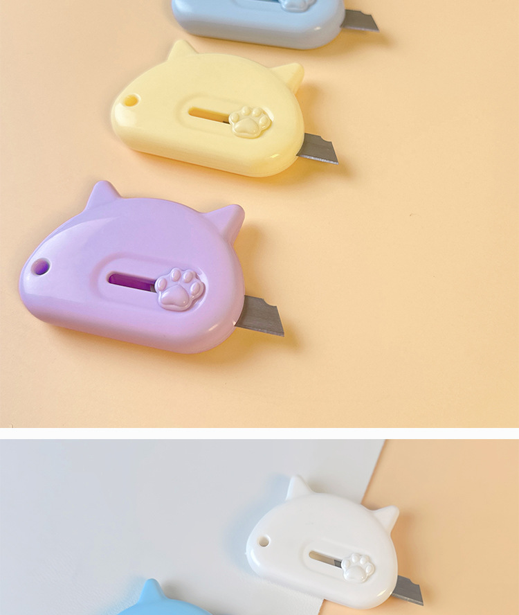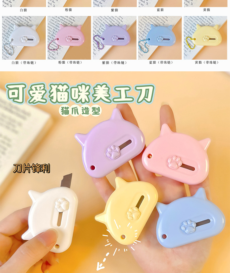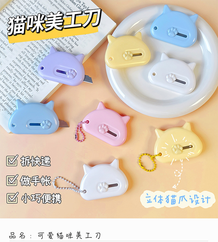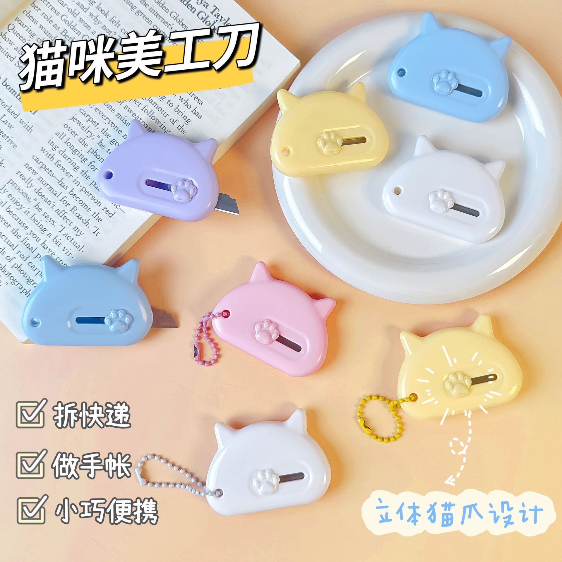 卡通小猫美工刀可爱糖果色拆快递开箱小刀迷你便携手工裁纸刀批发