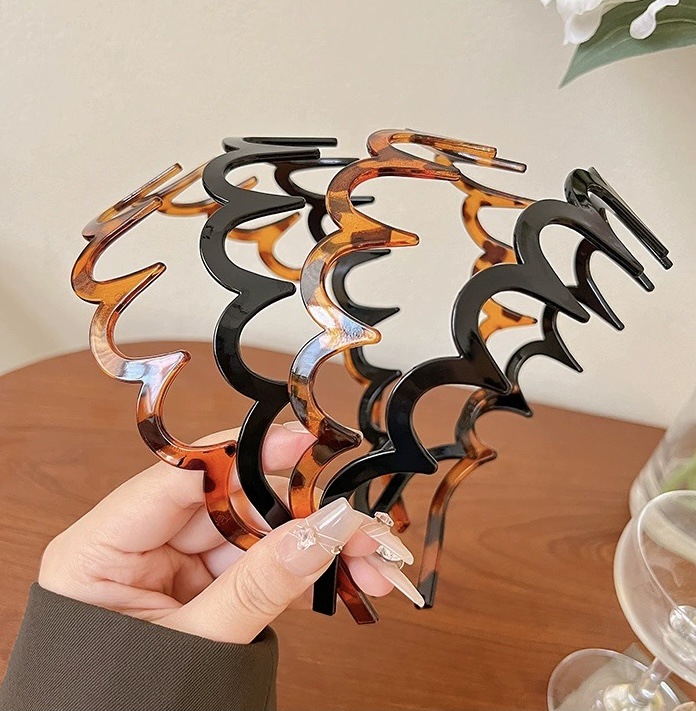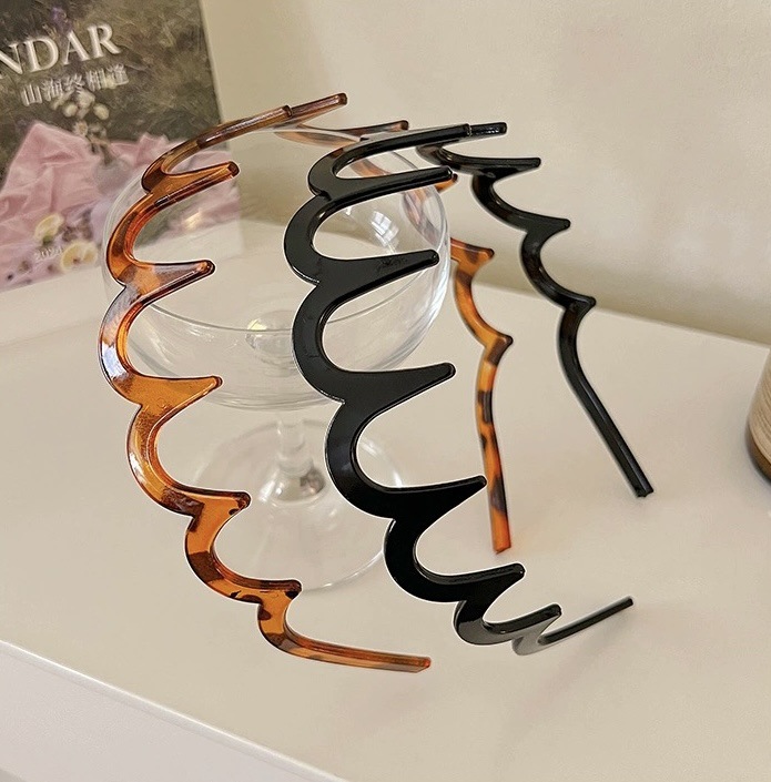 INS纹理感高颅顶大波浪带齿发箍气质碎发整理神器高级感韩系头箍