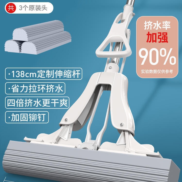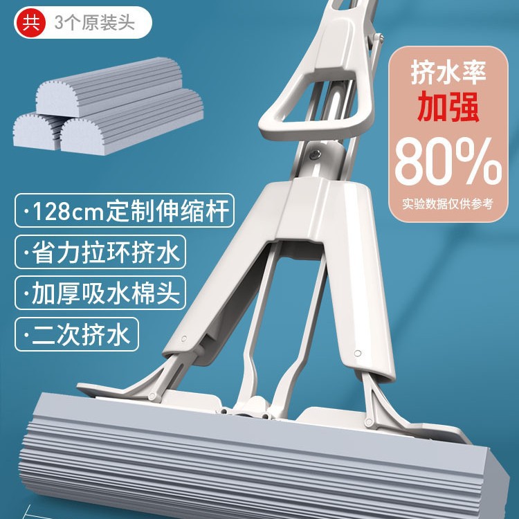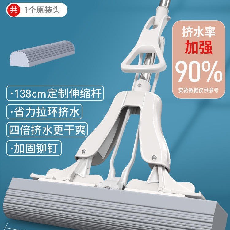 海绵拖把懒人拖地神器家用一拖净免手洗吸水大号胶棉拖把对折挤水