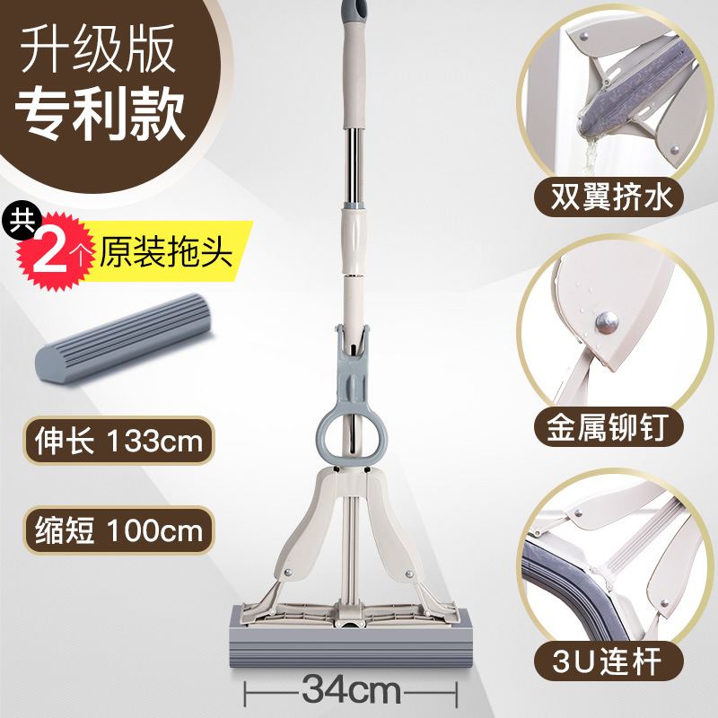 新款海绵吸水拖把头家用卫生间对折式挤水一拖净木地板懒人