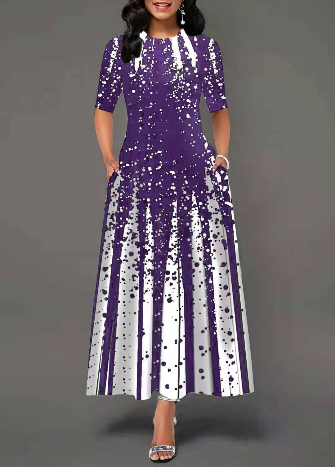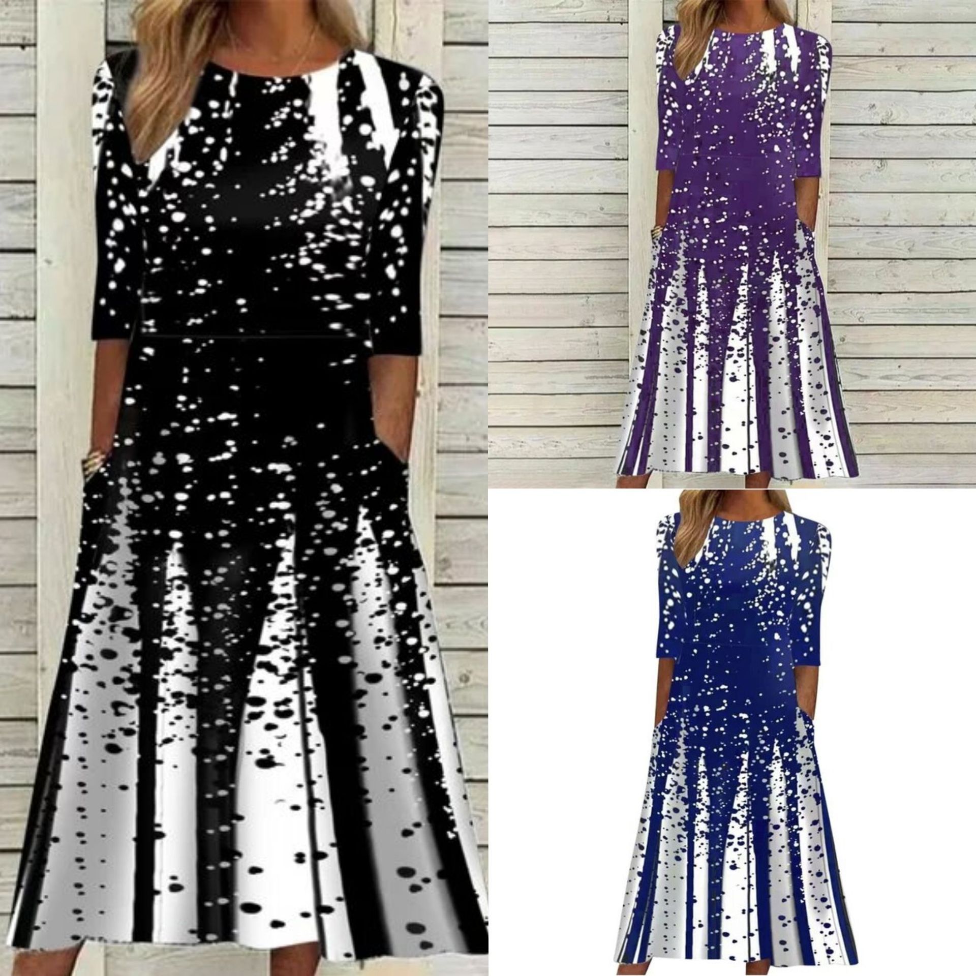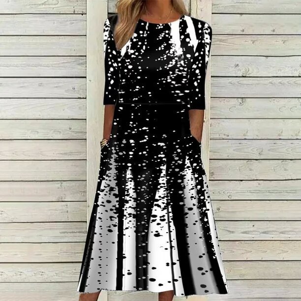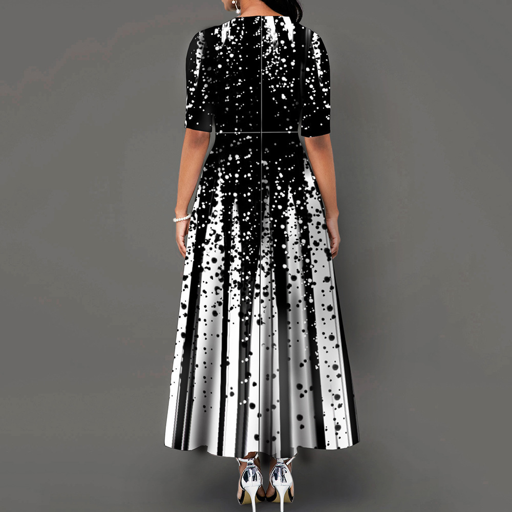 2024新款跨境欧美女装 时尚个性渐变定位印花圆领中袖大摆连衣裙