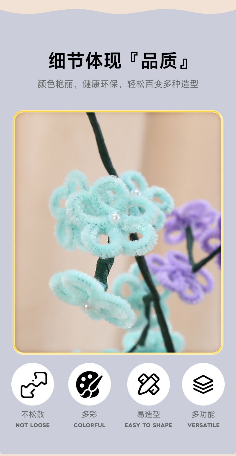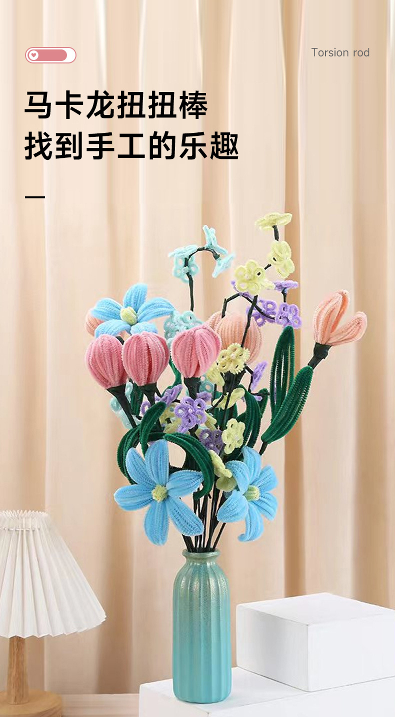 扭扭棒花束手工diy玫瑰花毛绒毛条幼儿园手工益智玩具扭扭棒批发