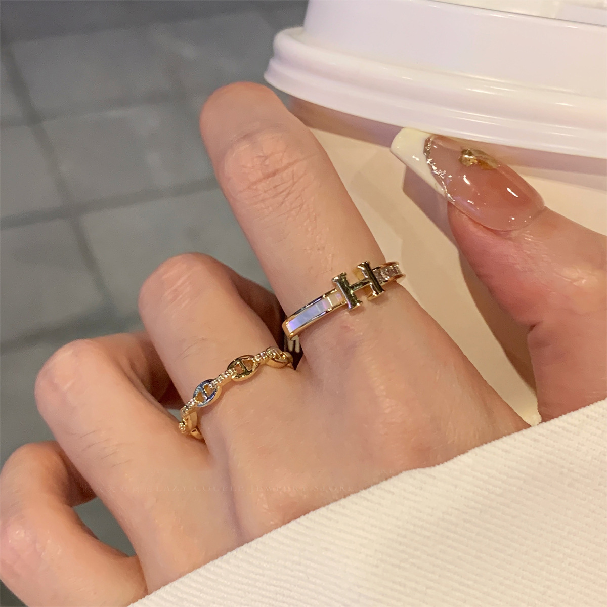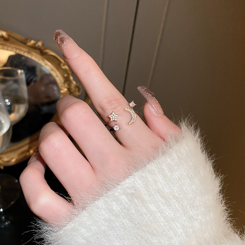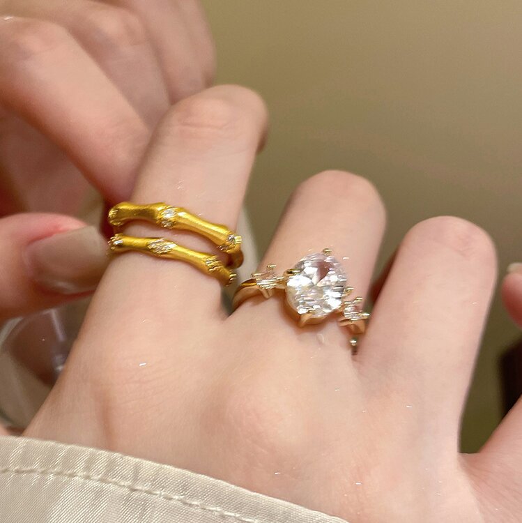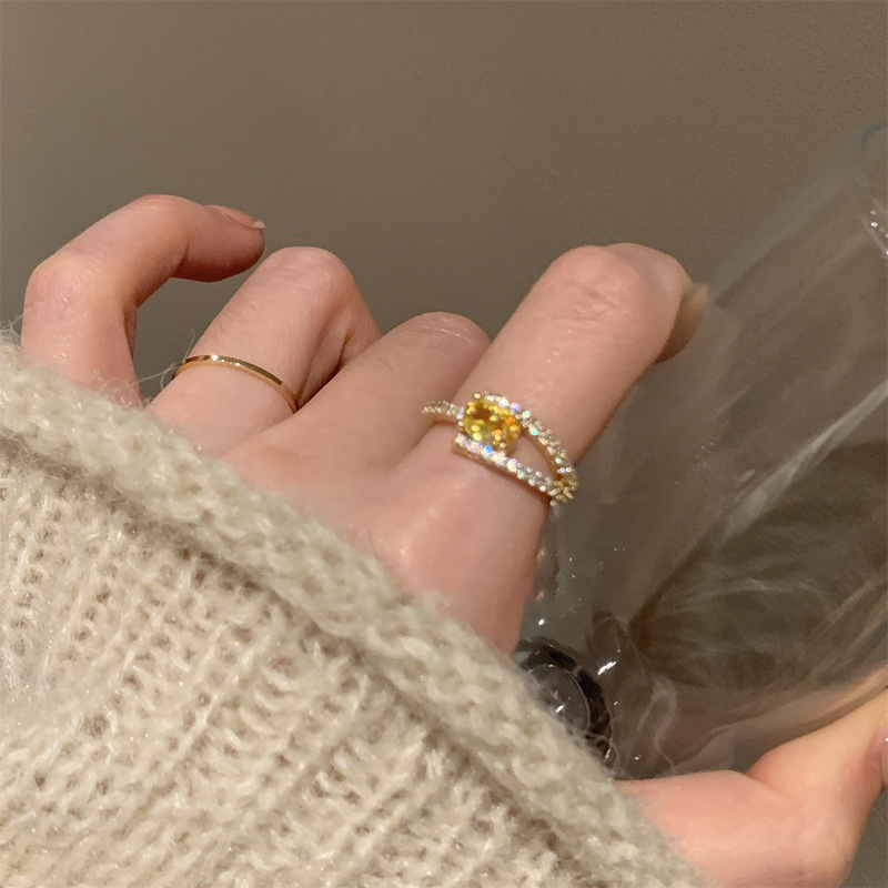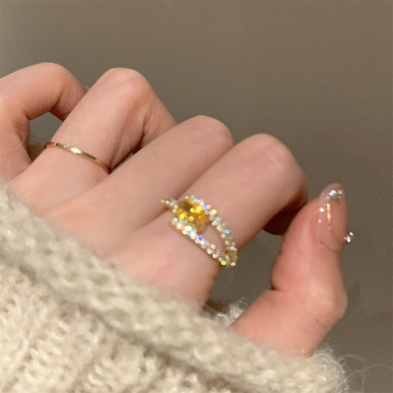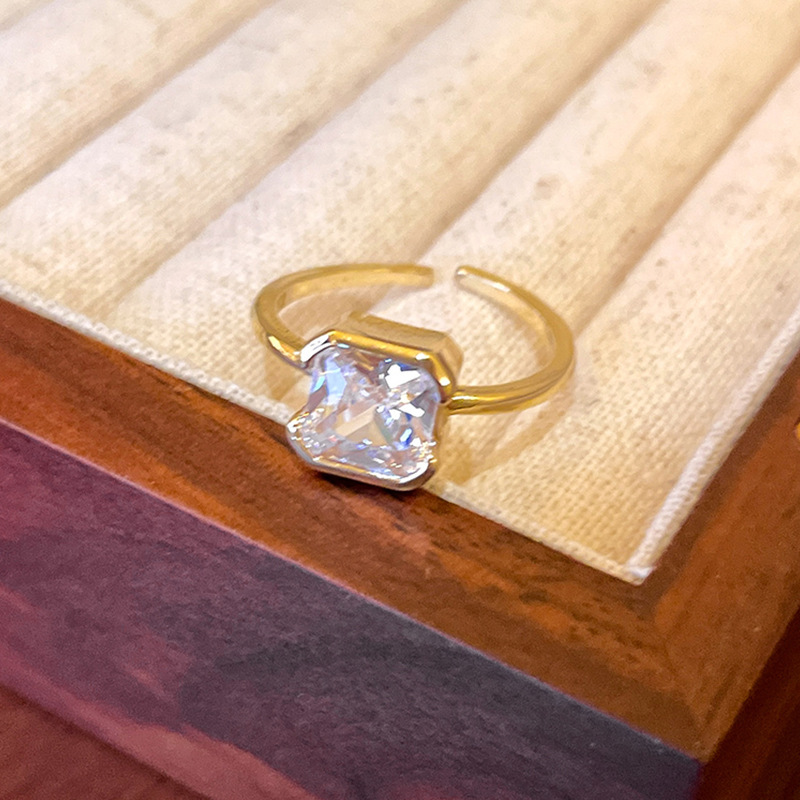 韩系轻奢锆石几何开口戒指精致时尚素圈食指戒气质感手饰配饰