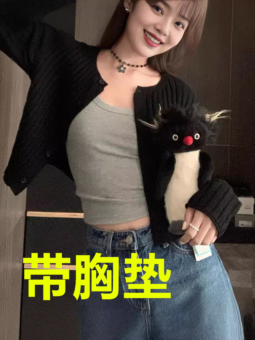 辣妹吊带背心女2024春夏新款外穿遮副乳带胸垫短款修身显瘦小背心