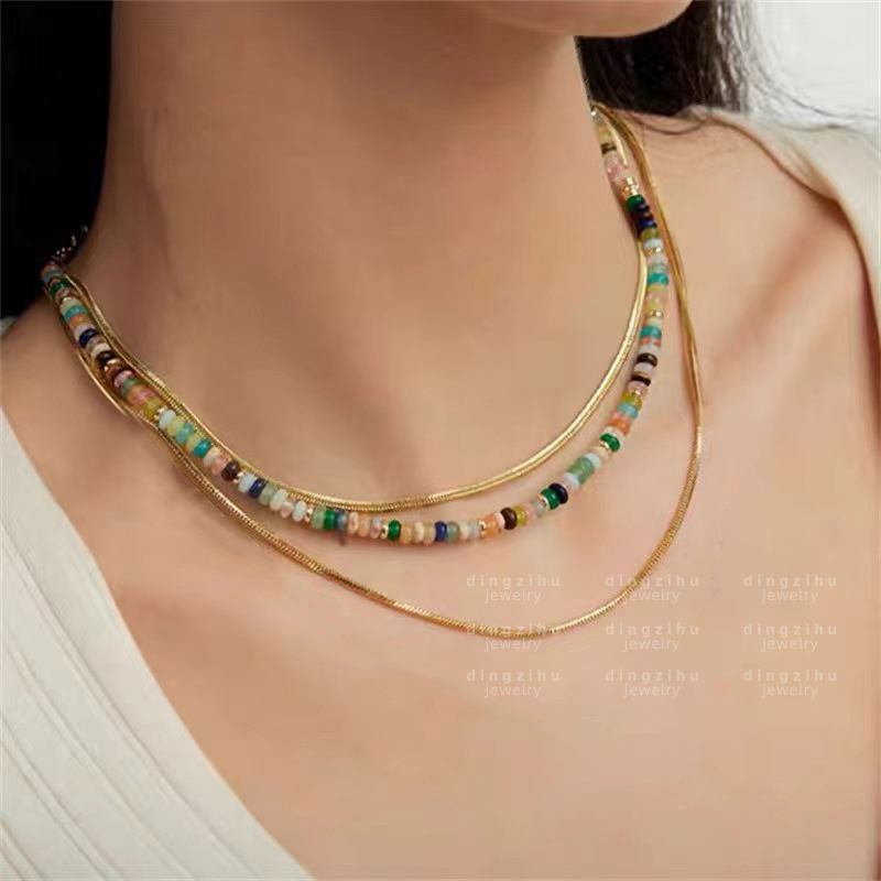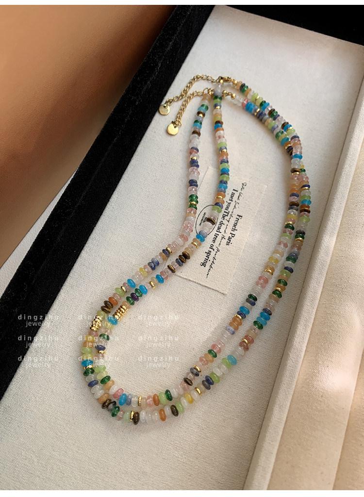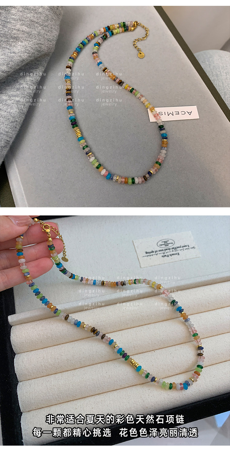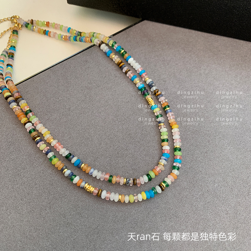 夏天彩色天然石项链女叠戴复古2025年新款爆款轻奢小众颈链配饰