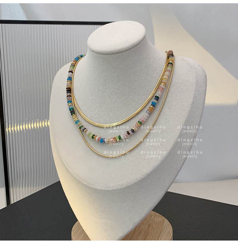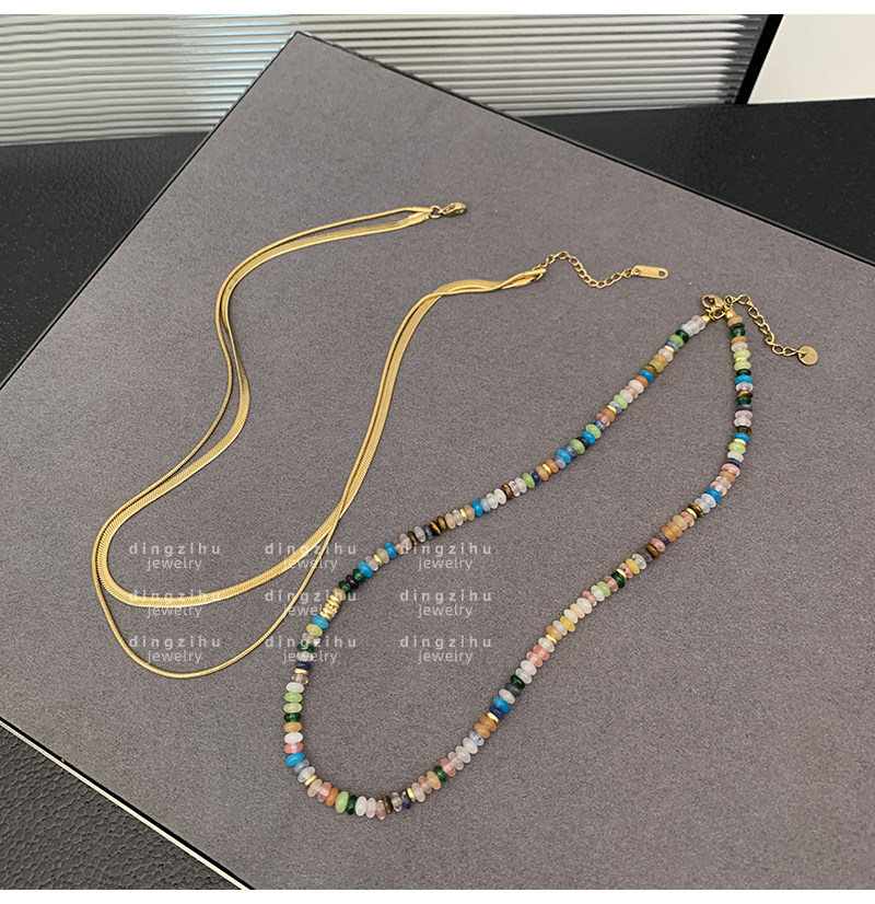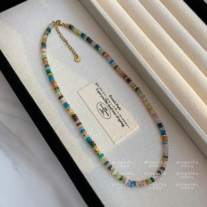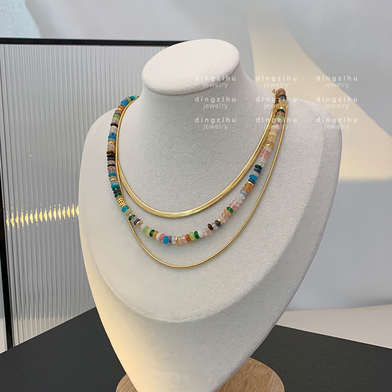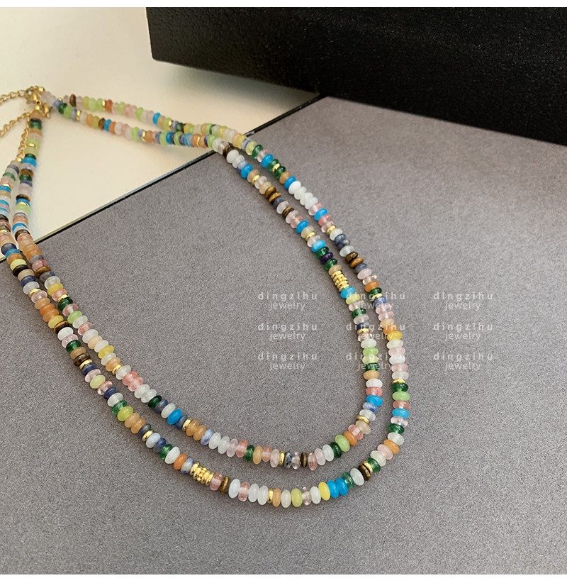 夏天彩色天然石项链女叠戴复古2025年新款爆款轻奢小众颈链配饰