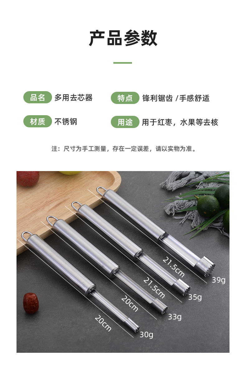 家用厨房不锈钢水果去芯器红枣苹果去核取芯去籽肉果肉分离工具