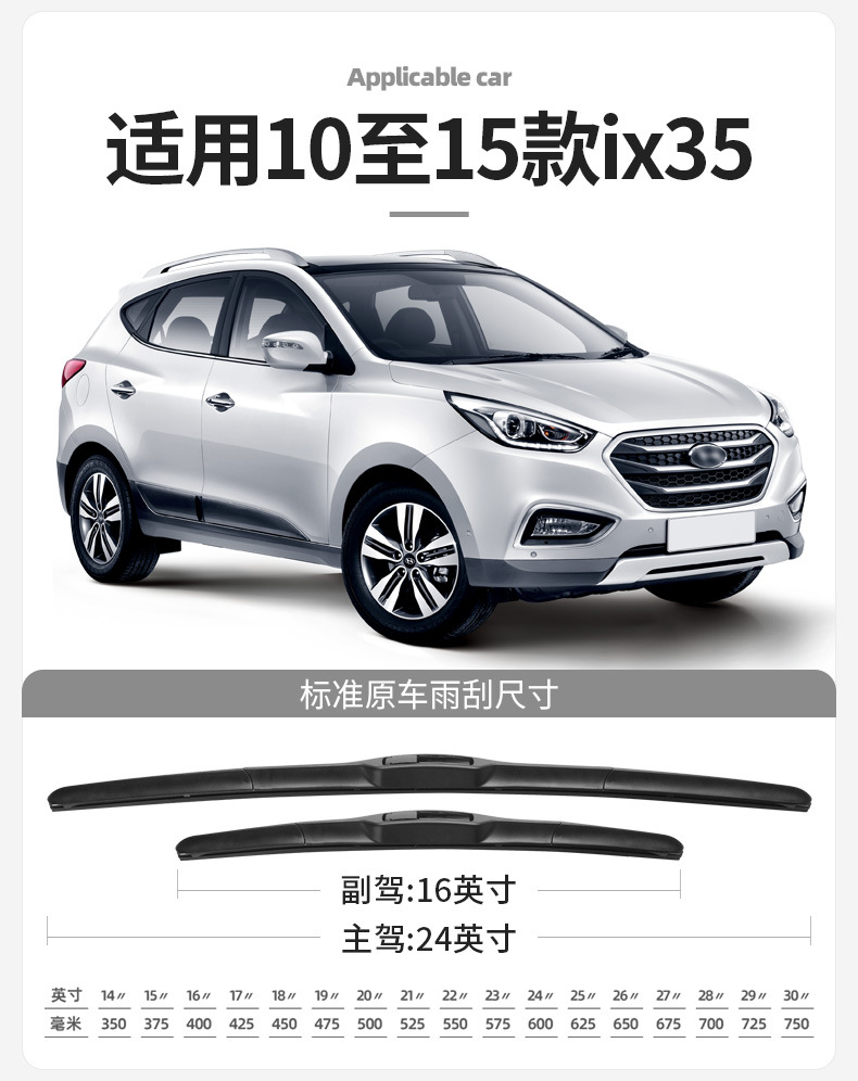 | special car interface hyundai ix35/2010-2015_suit (main and auxiliary wiper)(专车专用接口 现代ix35/2010-2015款_套装(主副雨刮)) | USD $5.33 | 9997 only available |