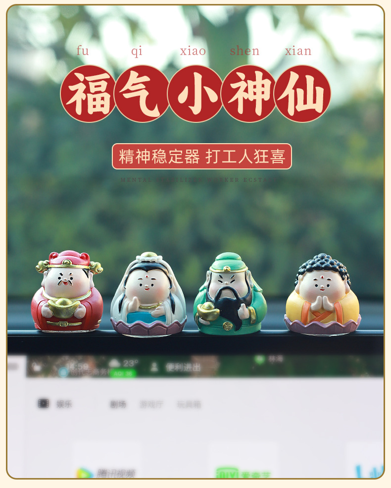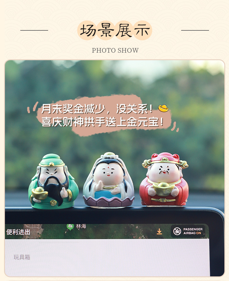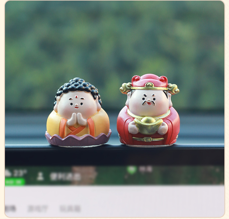 中式创意关公财神祝福车载装饰品桌面屏幕树脂文创迷你汽车小摆件