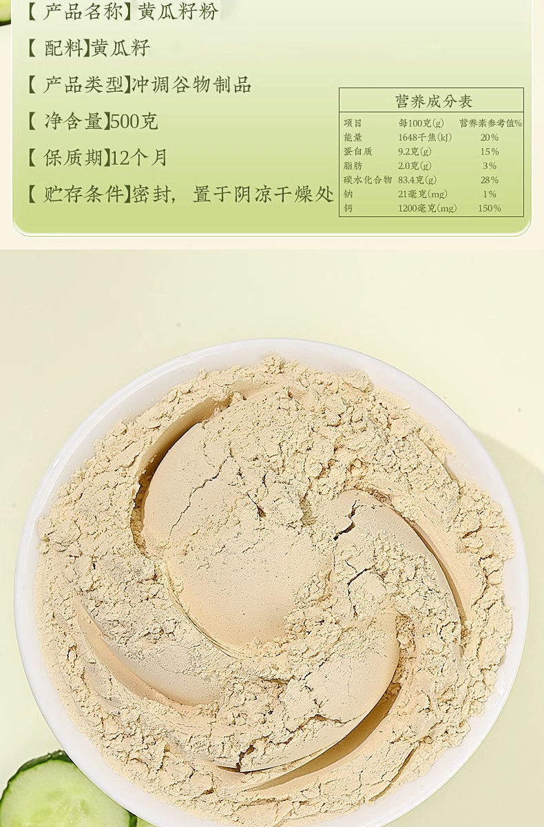 黄瓜籽粉冲饮食品罐装500g源头批发厂家直供黄瓜籽