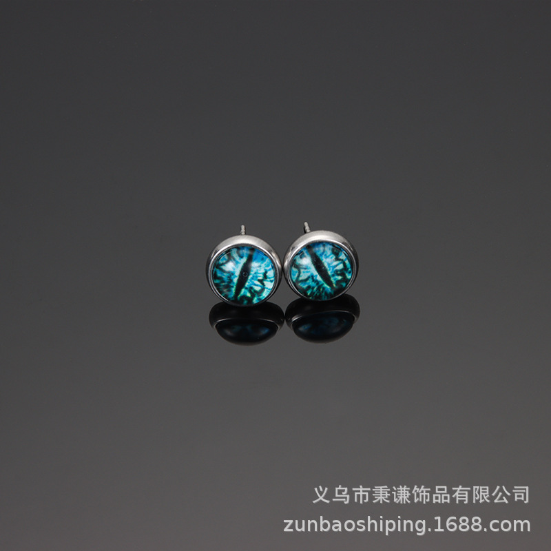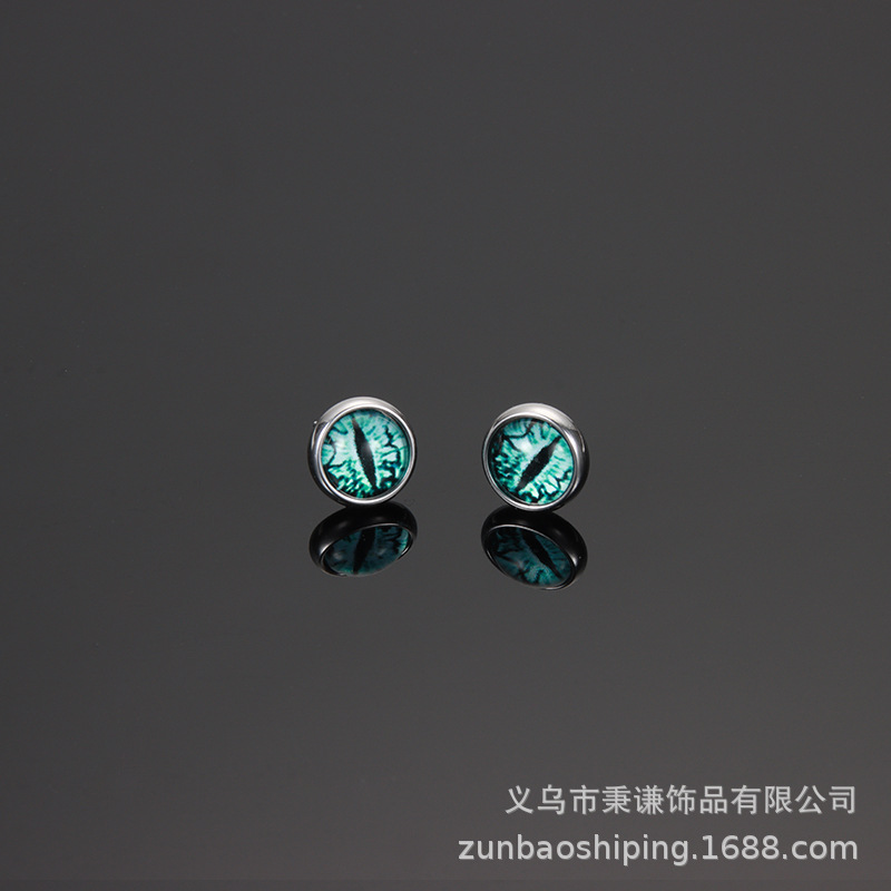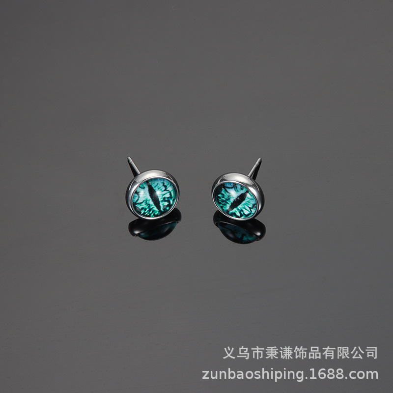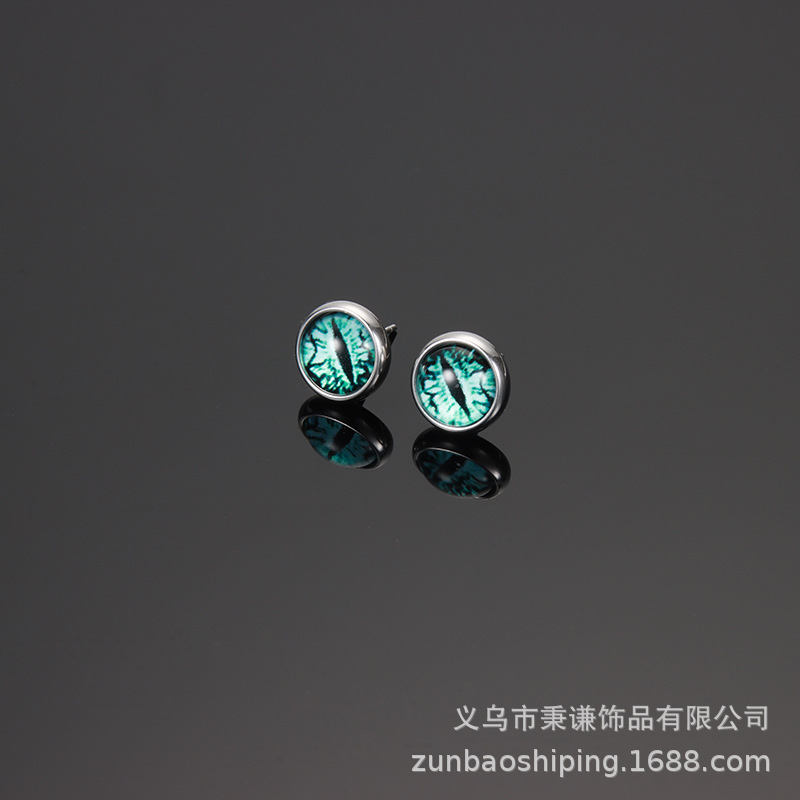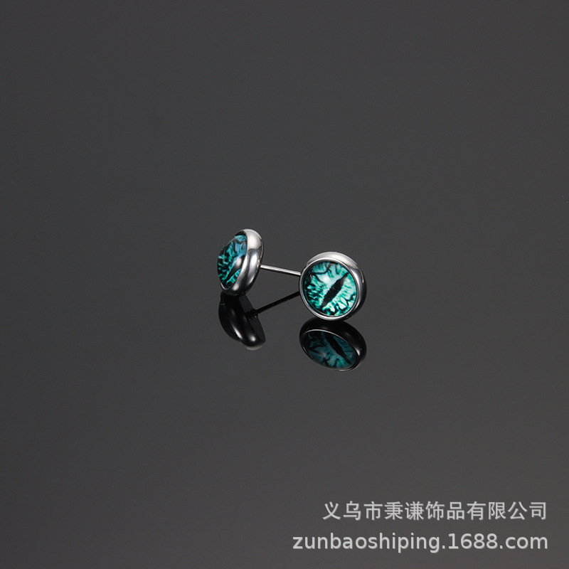 恶魔之眼耳钉男女情侣独特琉璃钛钢耳环帅赛博朋克耳饰品绿色眼睛